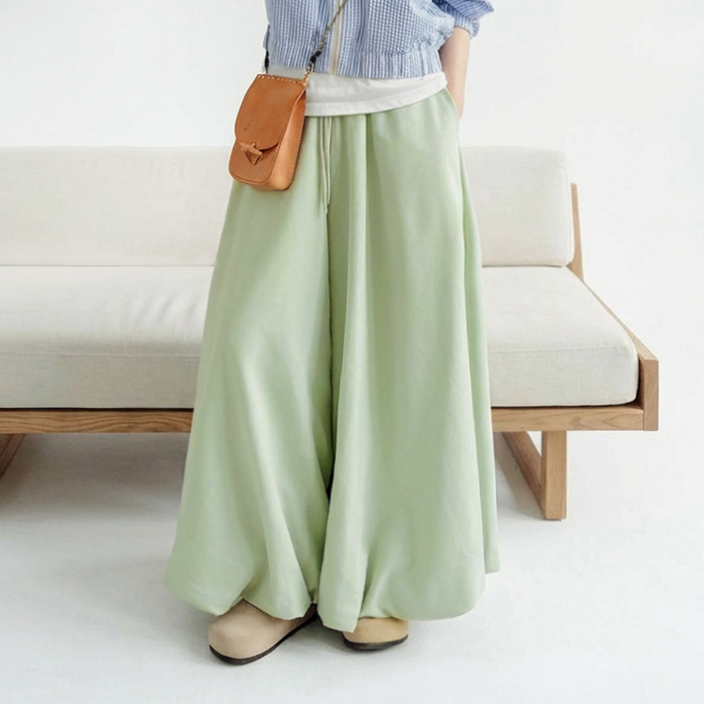 📚 马登桃皮绒垂感糯米花苞灯笼裙裤阔腿宽松紧腰抽绳休闲长裤子女春