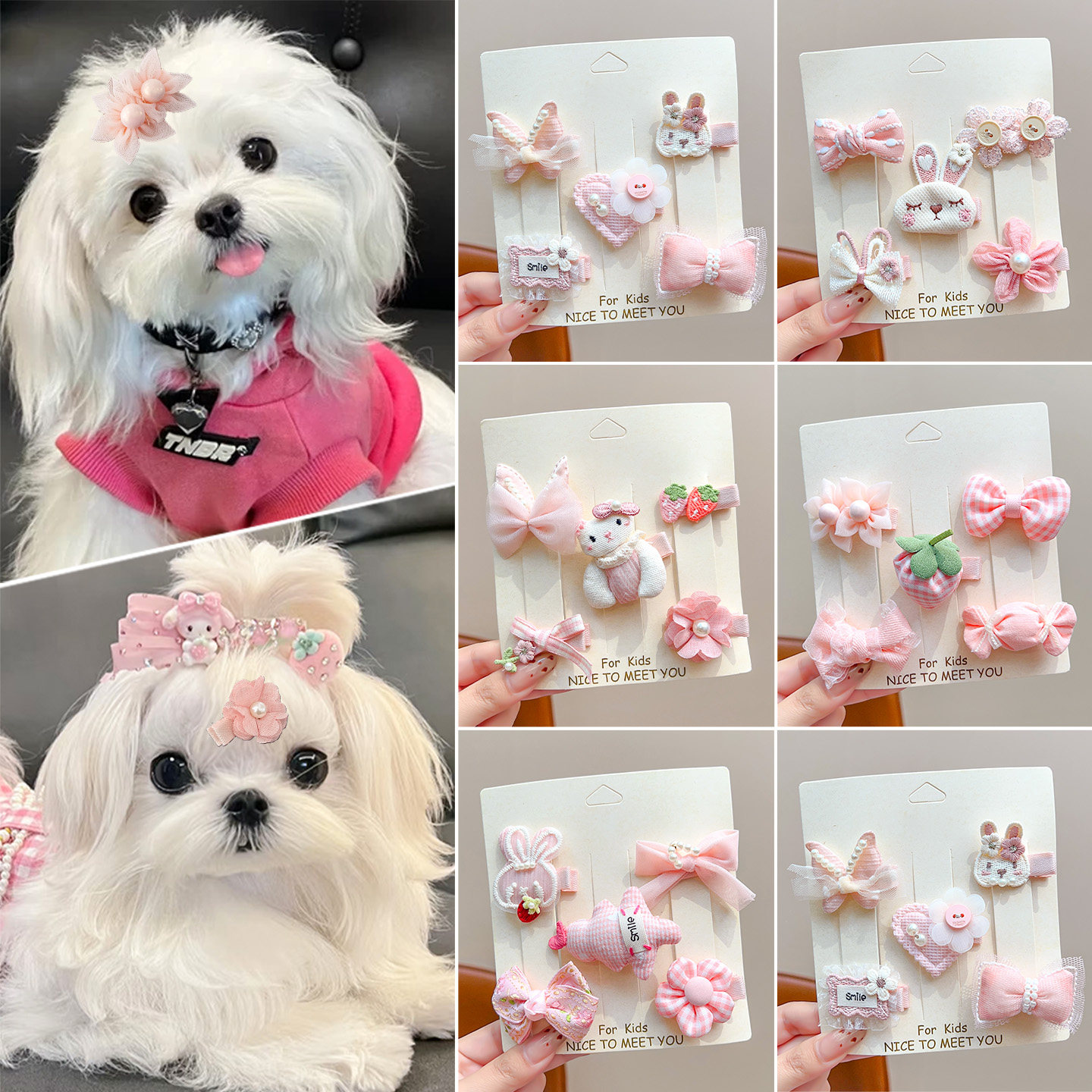 📚 粉色蝴蝶结马尔济斯发夹猫咪狗狗专用发卡约克夏拍照配饰宠物头饰