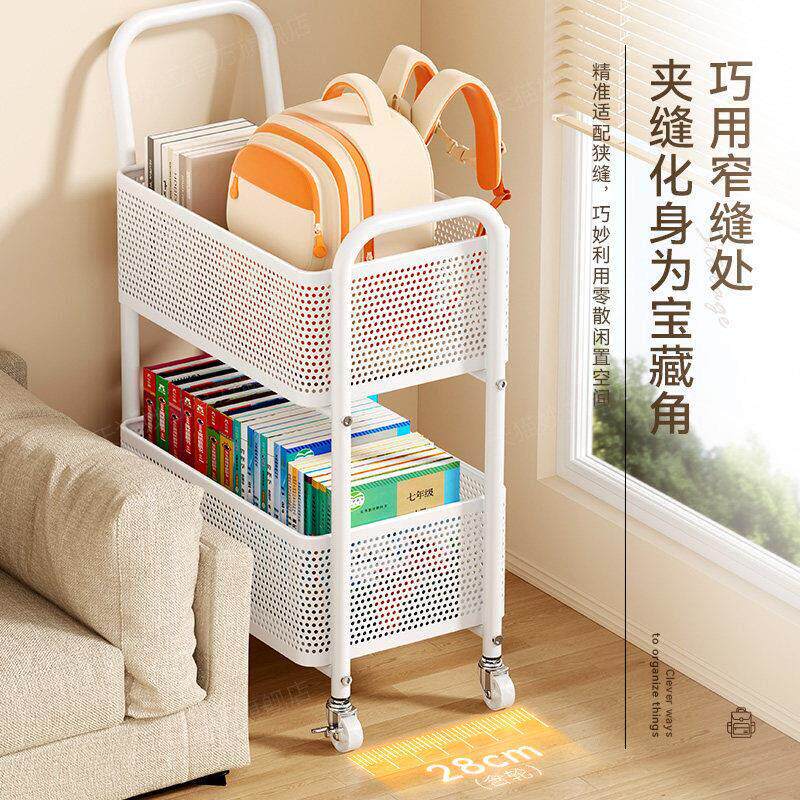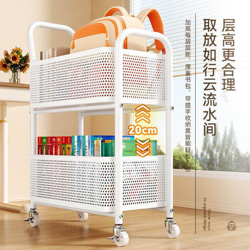 📚 碳钢书包置物架可移动小推车书本收纳架神器家用桌下放书包滑轮柜