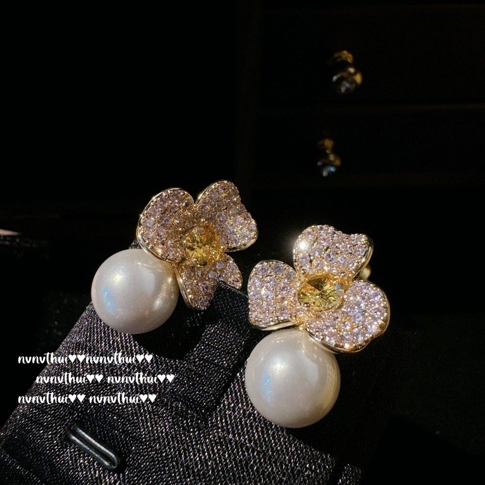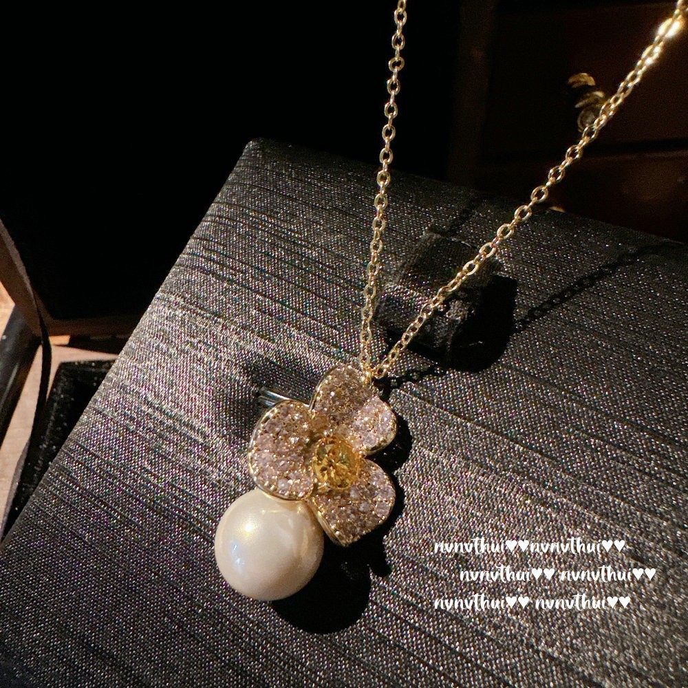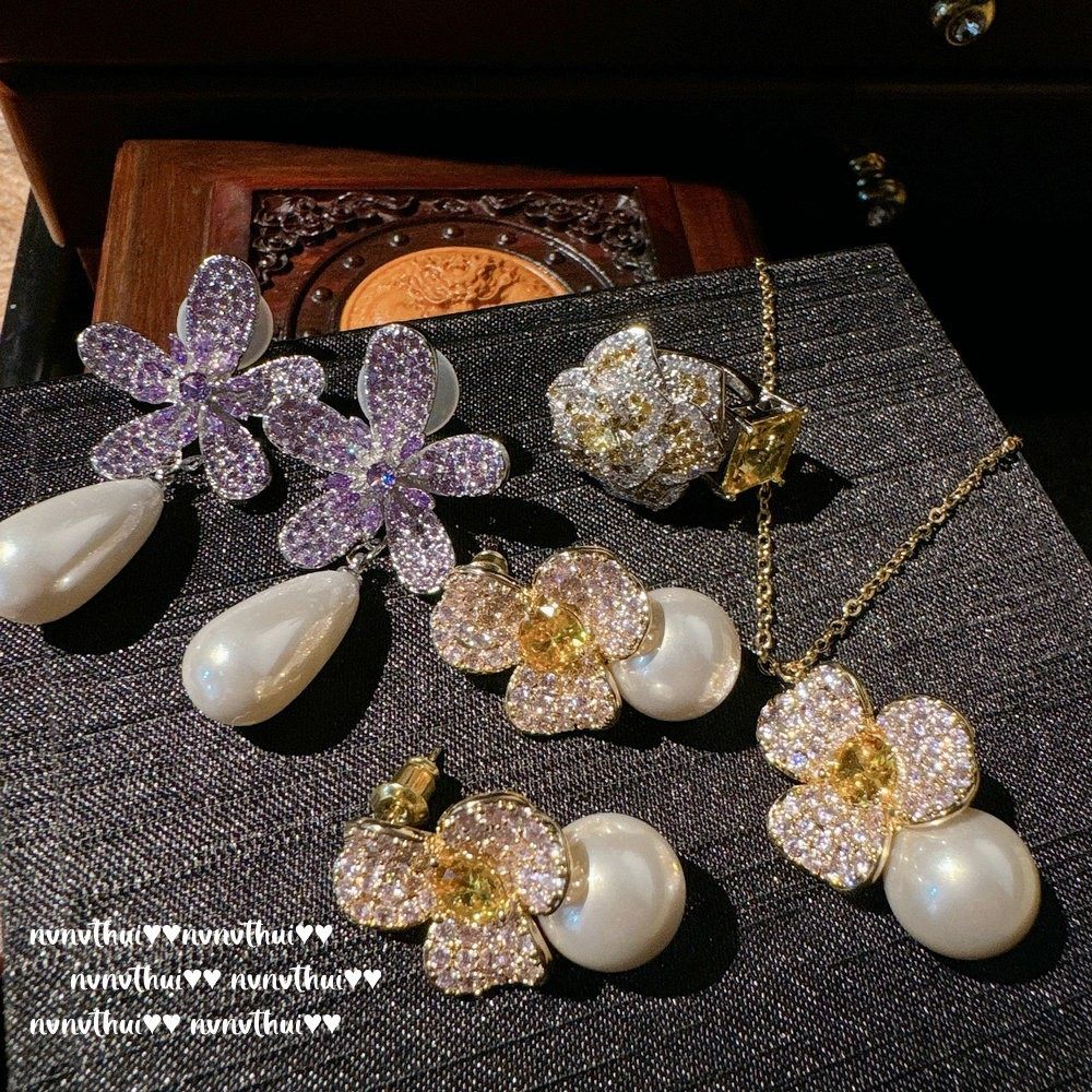 📚 富贵花晚会闪耀锆石戒指珍珠耳环 名媛气质贝珠花朵人鱼公主项链