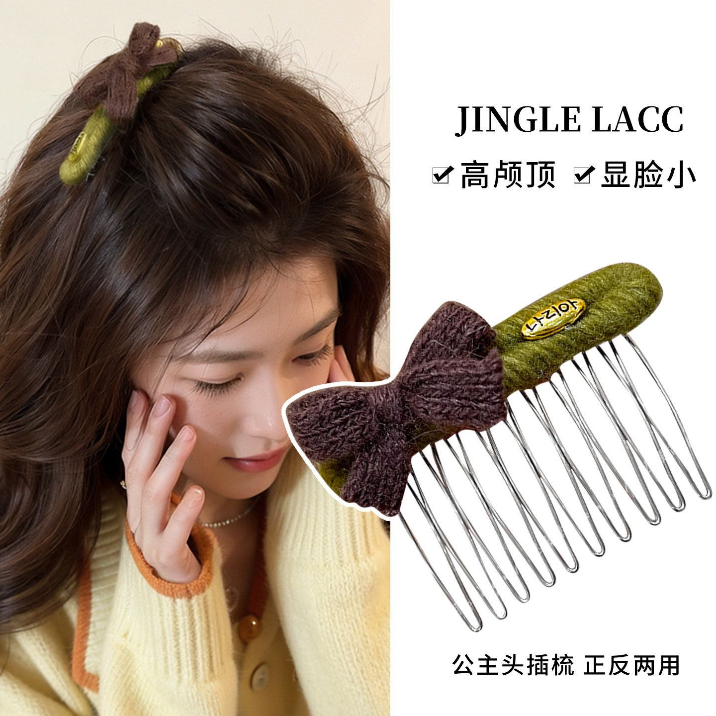 📚 针织蝴蝶结倒插梳发夹女高颅顶碎发神器侧边刘海碎发卡显脸小头饰