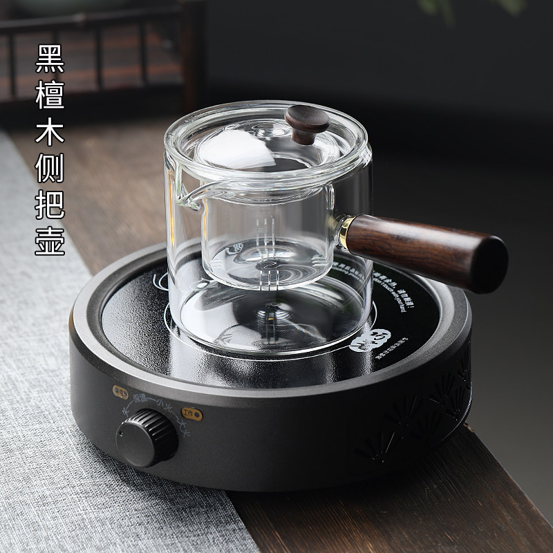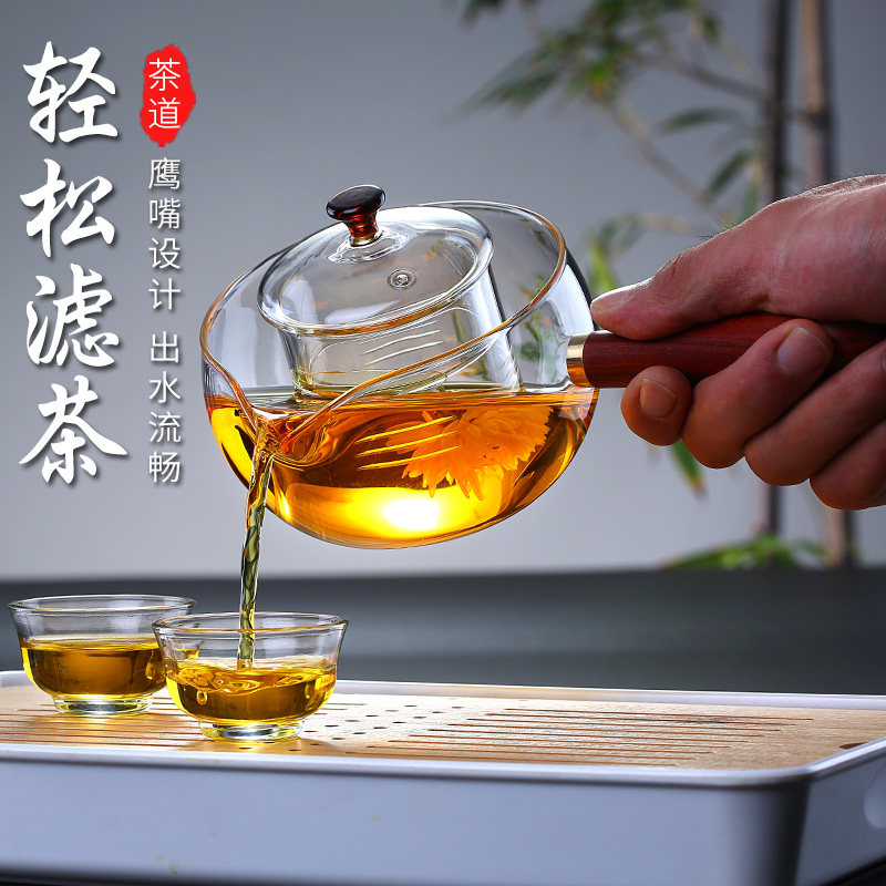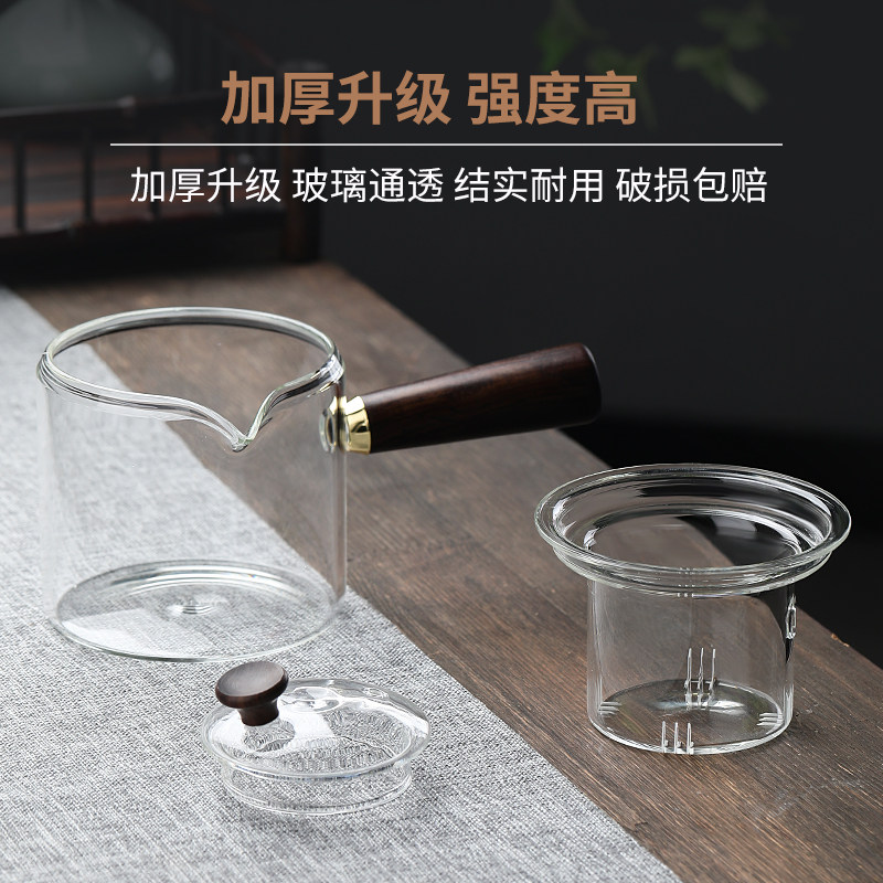📚 侧把煮茶壶玻璃煮茶器加厚耐热过滤泡茶壶木把青柑分茶器功夫茶具