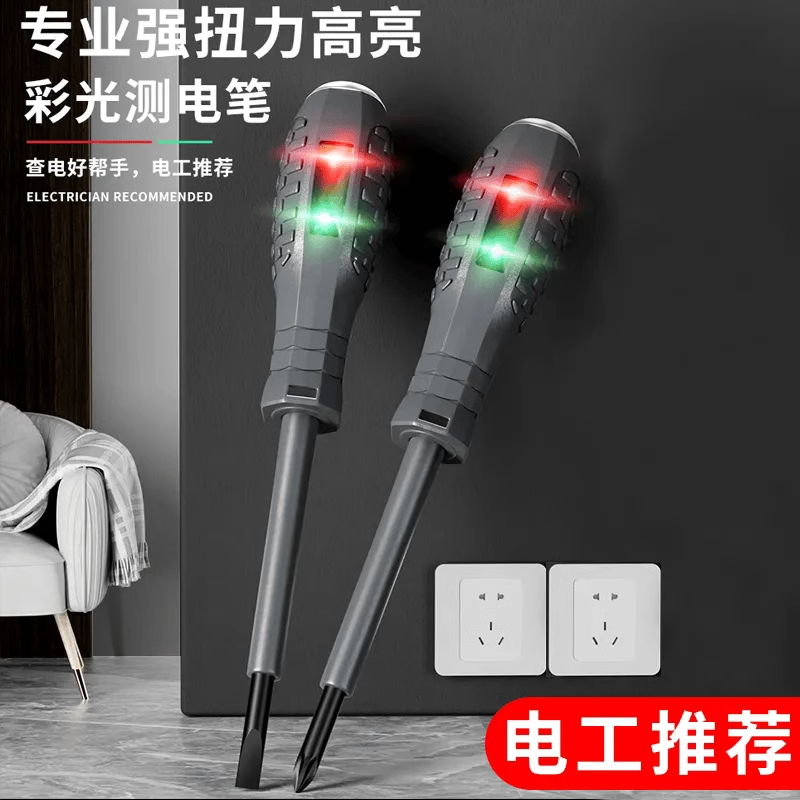 📚 高扭力电工测电笔螺丝刀彩光智能测断点断线测零火线家用试电笔