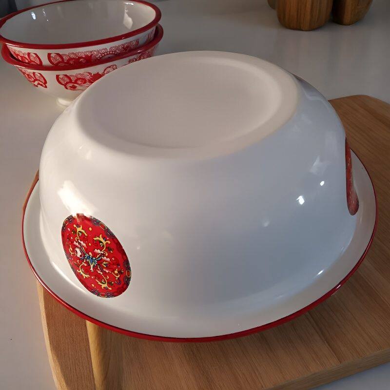 📚 新品28公分出口珐琅搪瓷特厚红色红勾连搅拌盆和面盆洗菜盆可加热