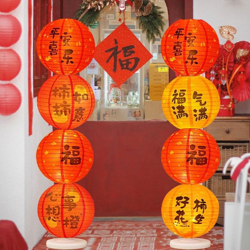 📚 新年灯笼装饰发光带灯落地摆件立柱路引商场店铺过年春节场景布置