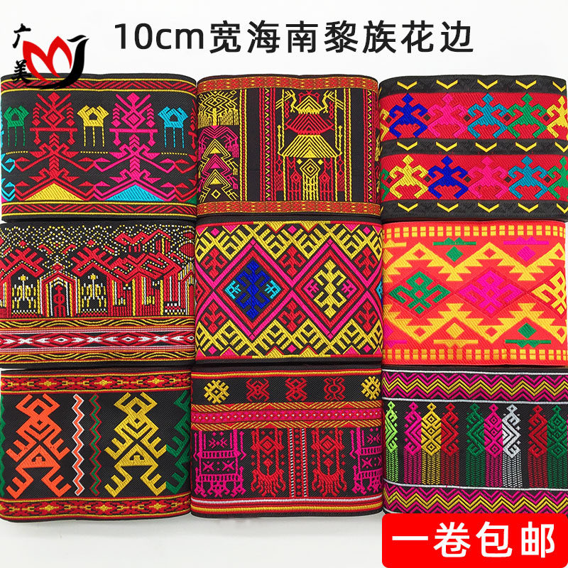 📚 海南黎族花边筒裙群头布料少数民族服装辅料舞台配饰花边刺绣织带