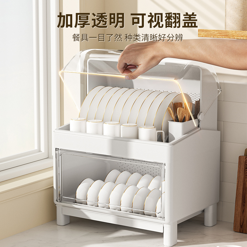 📚 家用厨房双层碗柜台面碗筷收纳盒塑料装餐具碟盘沥水收纳架置物架