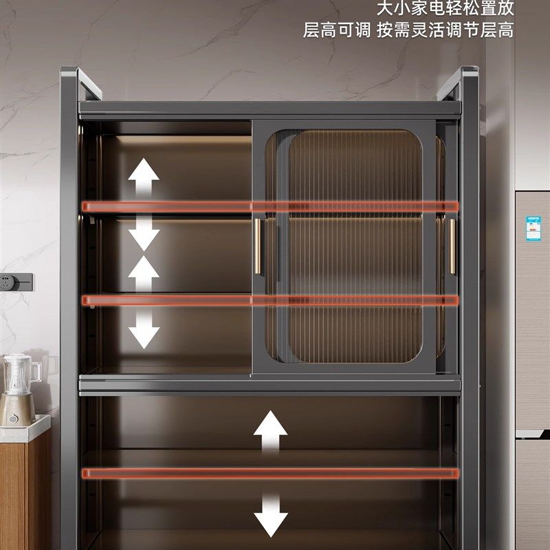 📚 厨房架式落地式多功能推拉门多层餐具柜家用微波锅碗储物柜