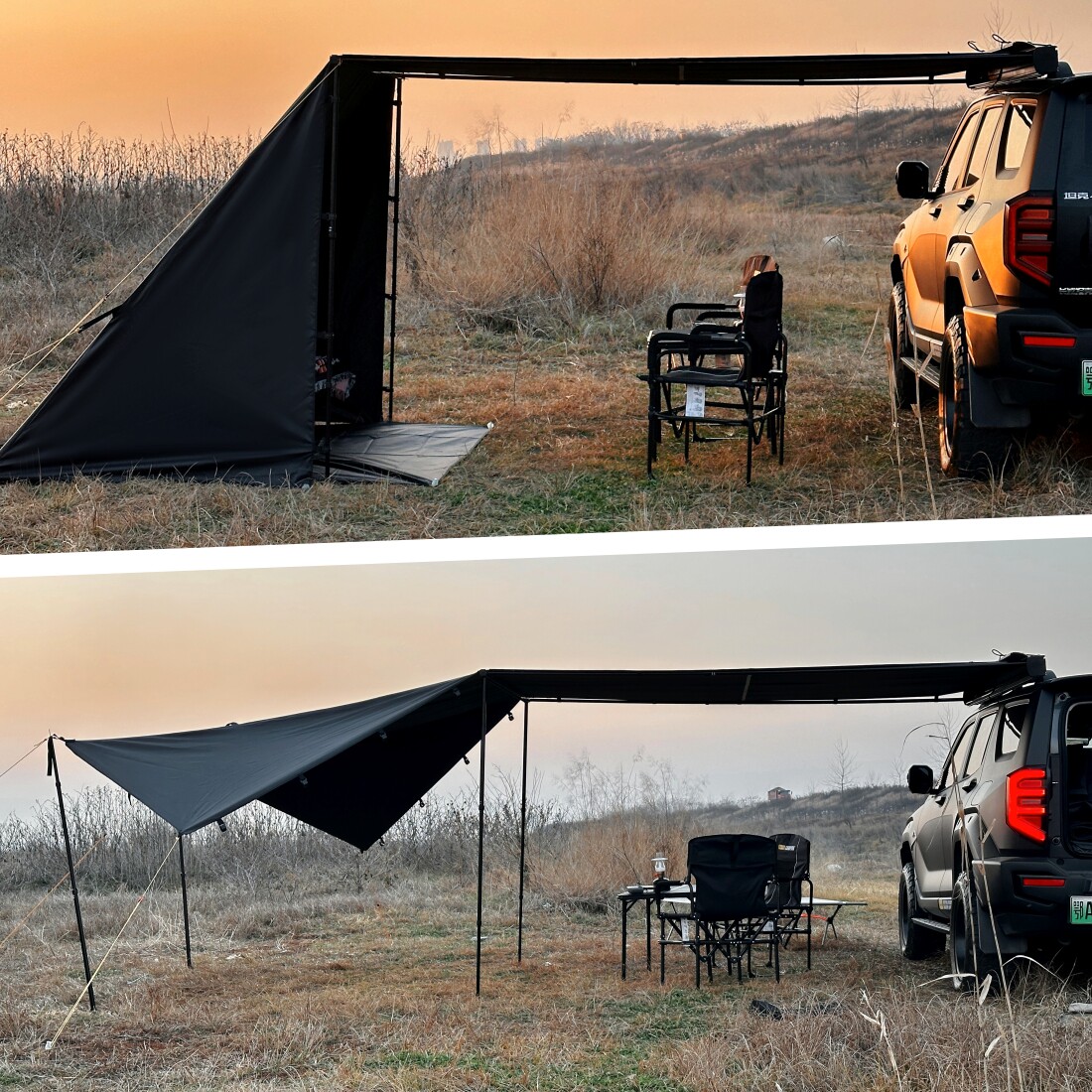 📚 简森户外黑化黑胶车边帐拓展宇宙三角庇护所帐篷天幕侧帐布房遮阳