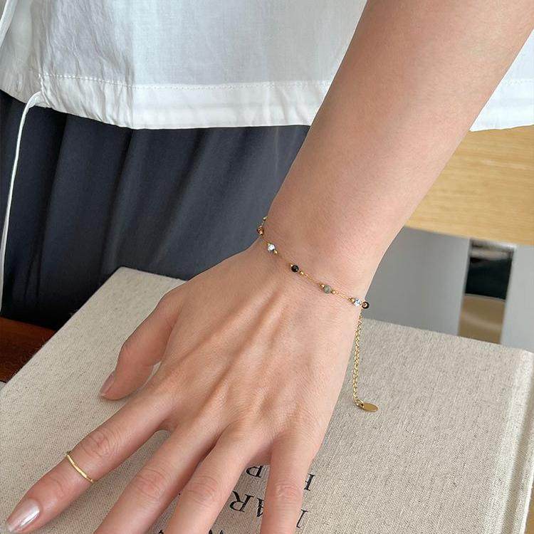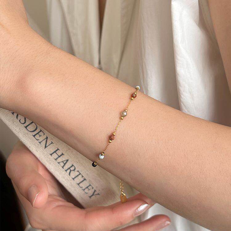 📚 豆豆天然石拼接隔珠简约手链女时髦欧美风休闲风时尚手串手饰大气