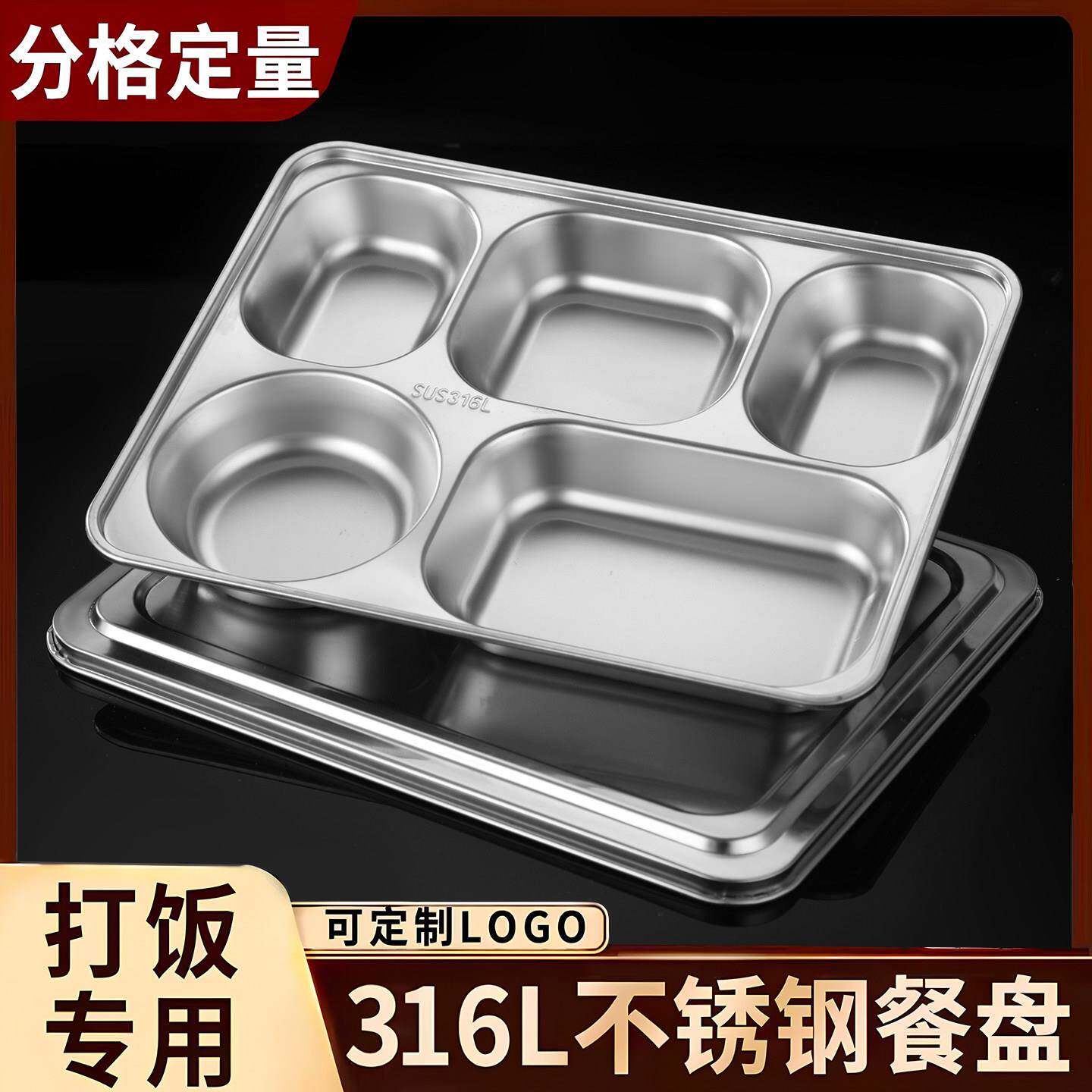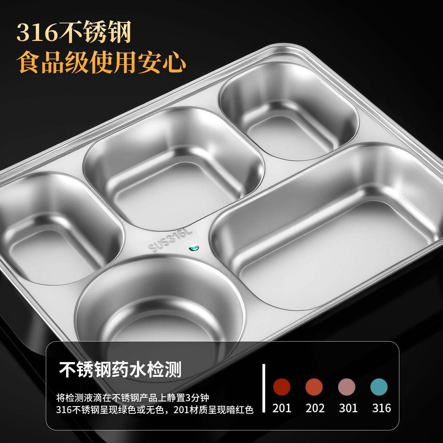 📚 316不锈钢餐盘方形四格五格快餐盘成人学生食堂加厚餐盒分格饭盒