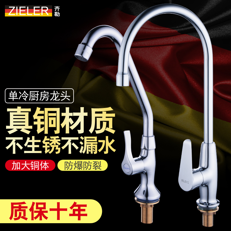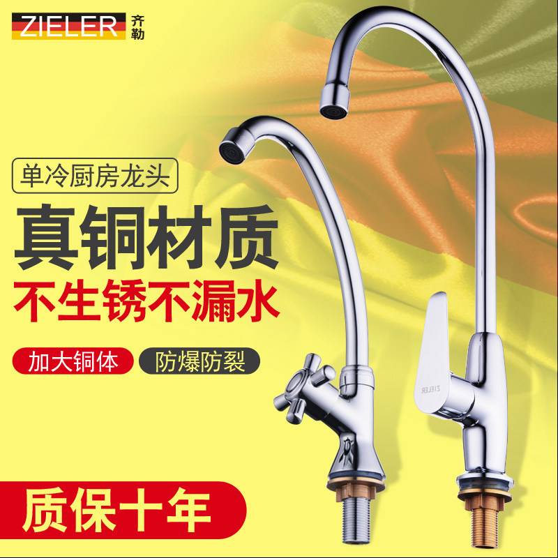 📚 齐勒厨房龙头单冷水黄铜洗菜盆水龙头不锈钢水槽龙头淘菜盆水笼头