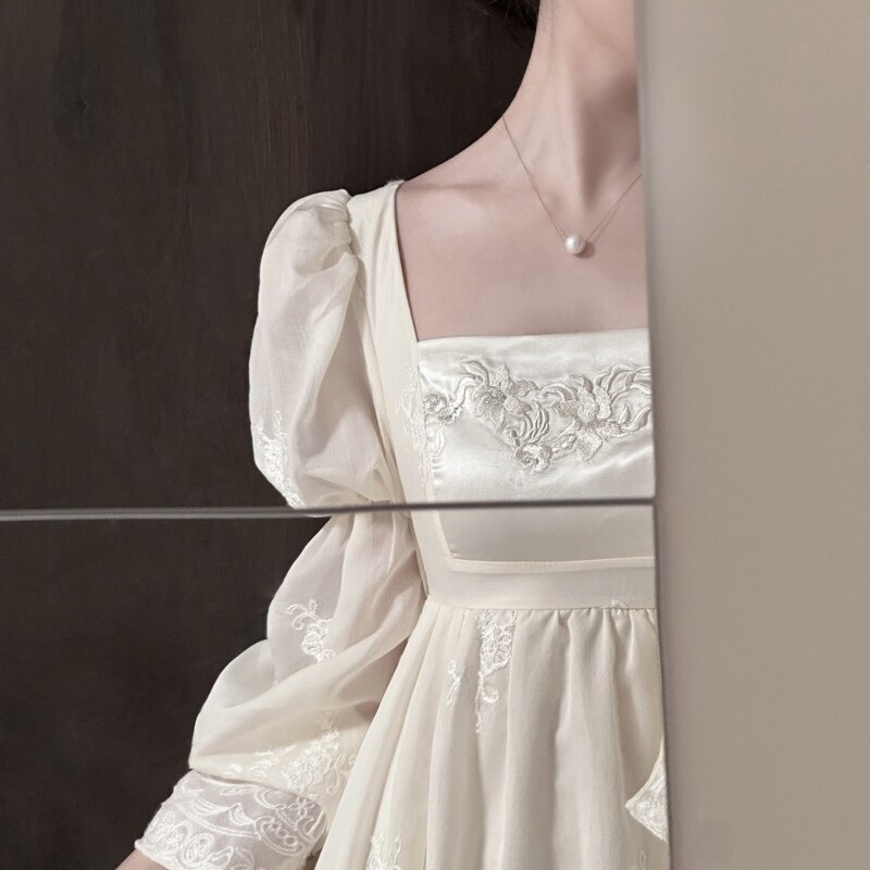 📚 「百合」法式帝政风天丝重磅定位刺绣连衣裙