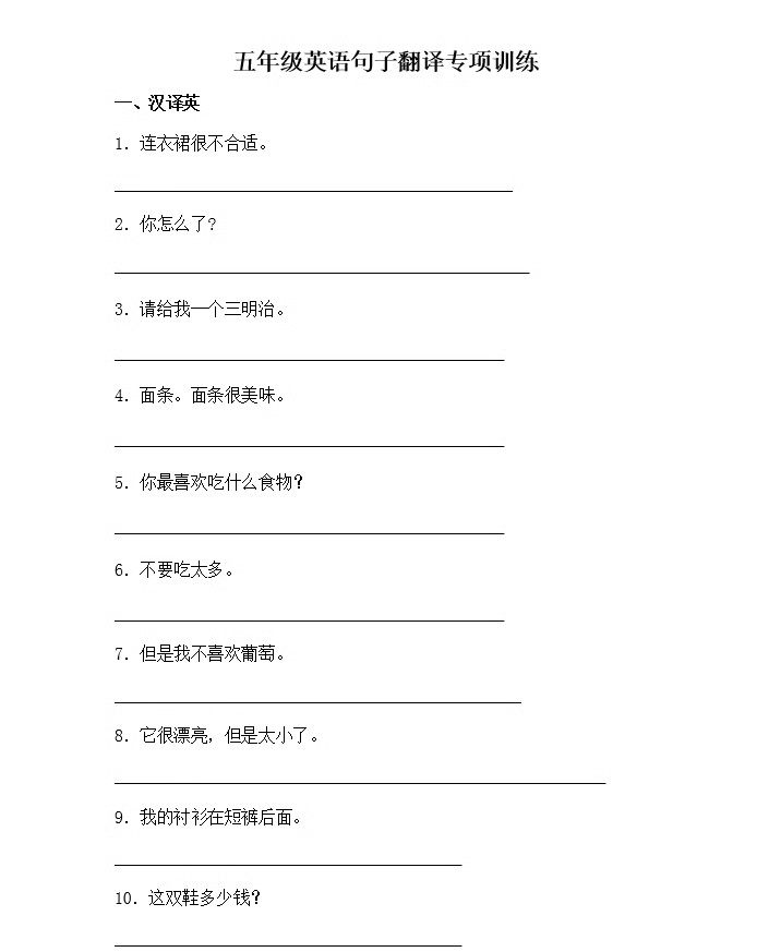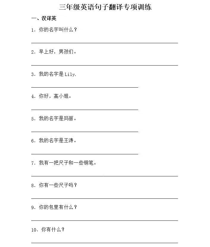 📚 三四五六年级小学英语汉译英句子翻译训练专项练习本题答案作业本