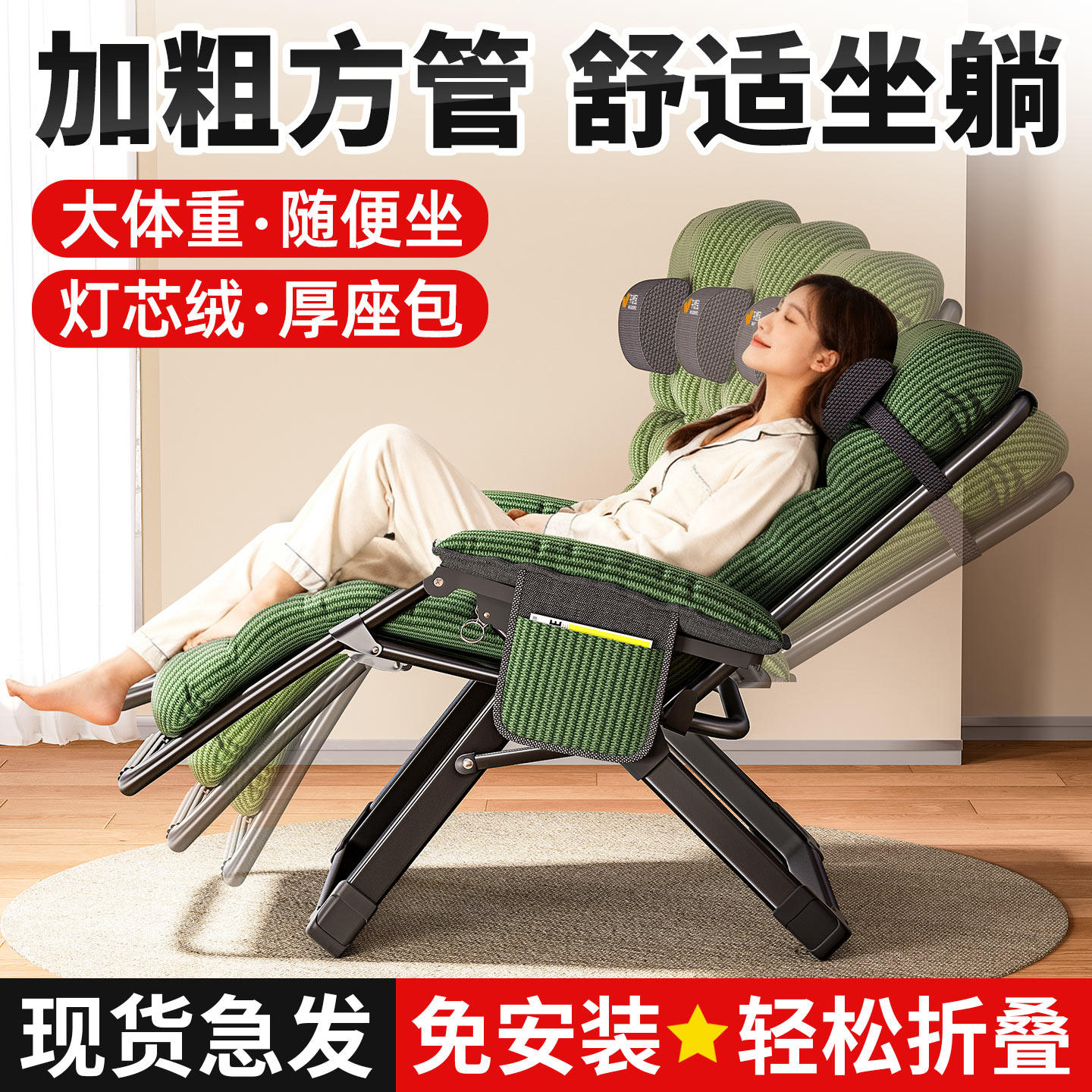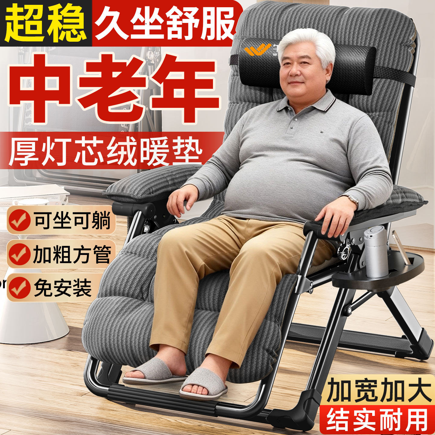 📚 午憩宝折叠躺椅家用阳台老人坐睡两用靠背椅懒人办公午休沙发椅子