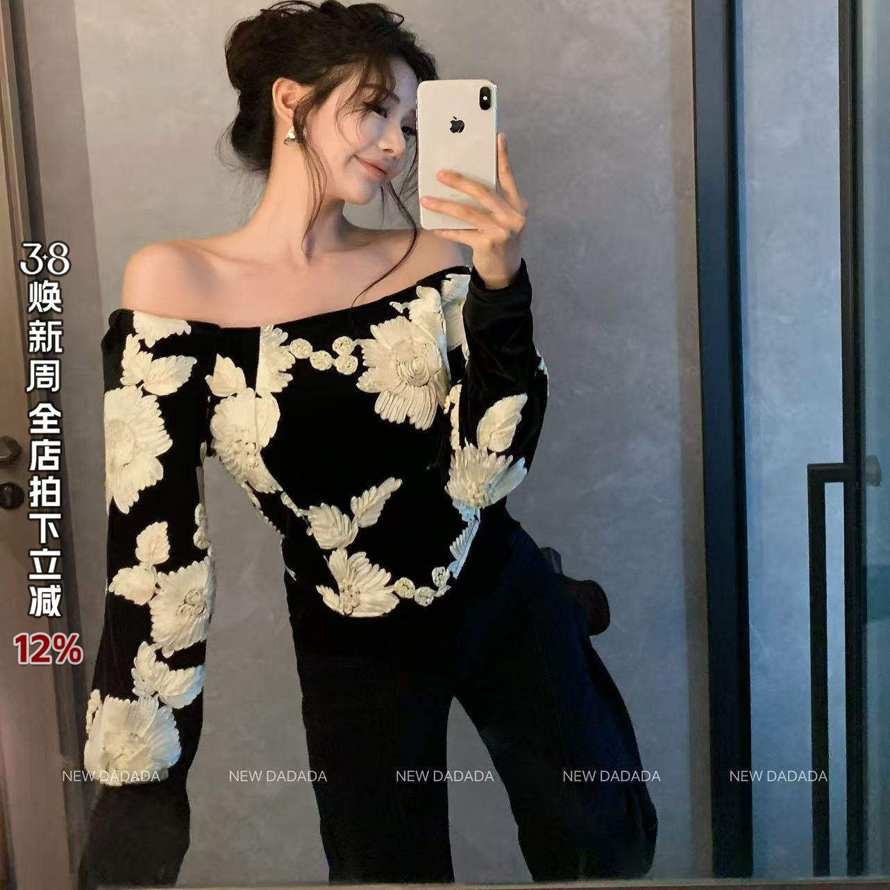📚 利达 NEW DADADA【甜嗓知性】一字肩露肩设计小众长袖衬衫上衣女