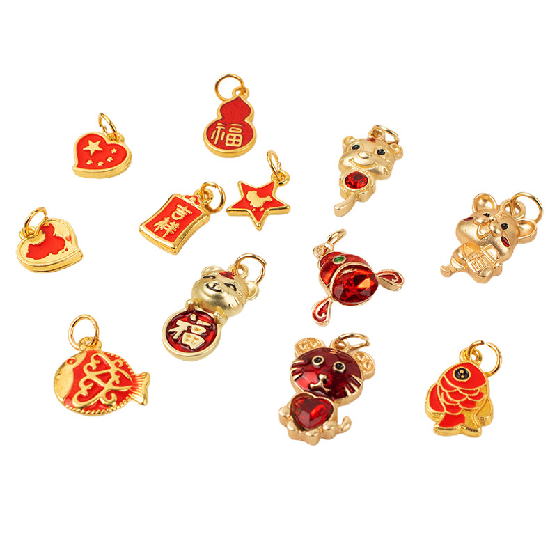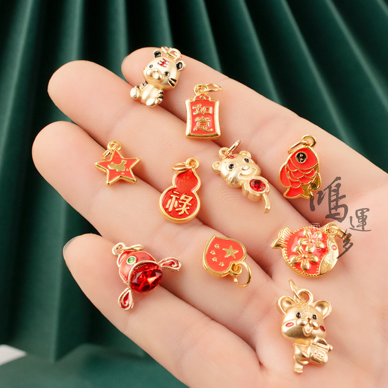 📚 国潮小萌虎吊坠小滴溜diy配件手工吊饰手绳手链配饰鱼跃龙门挂件