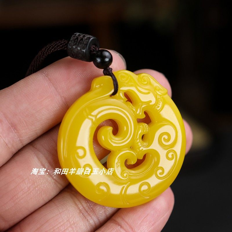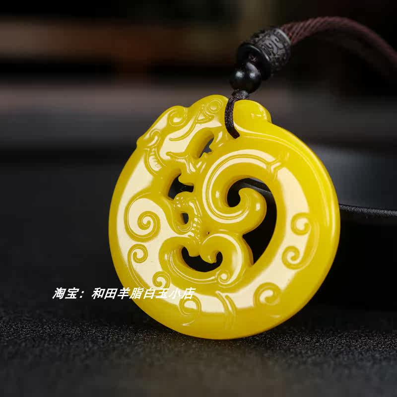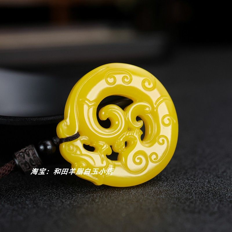 📚 黄龙玉龙形玉佩吊坠男和田玉镂空龙牌仿古龙项链新疆玉生肖龙挂件