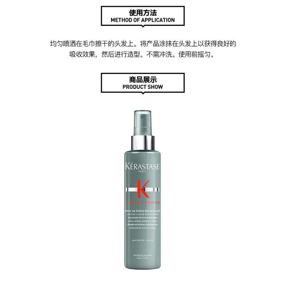📚 自营 Kerastase/卡诗Genesis系列男士巩固发根免洗喷雾150ml正品