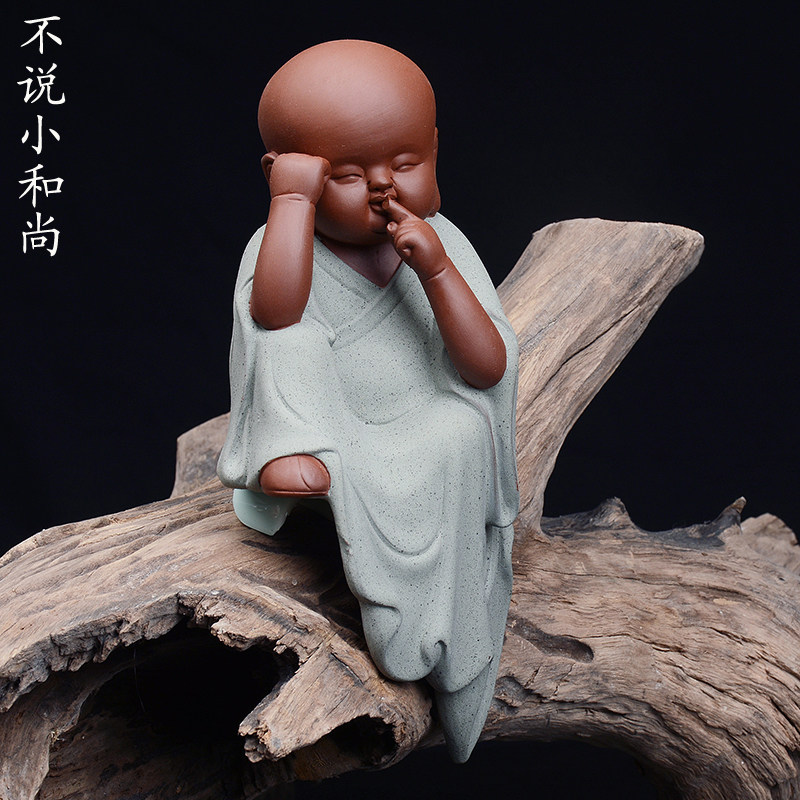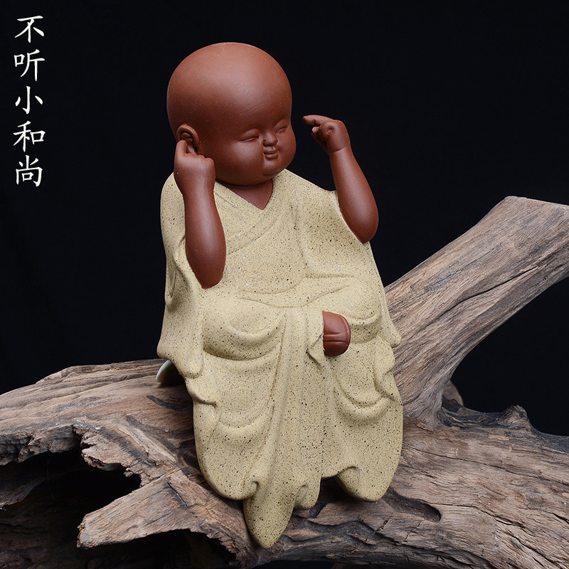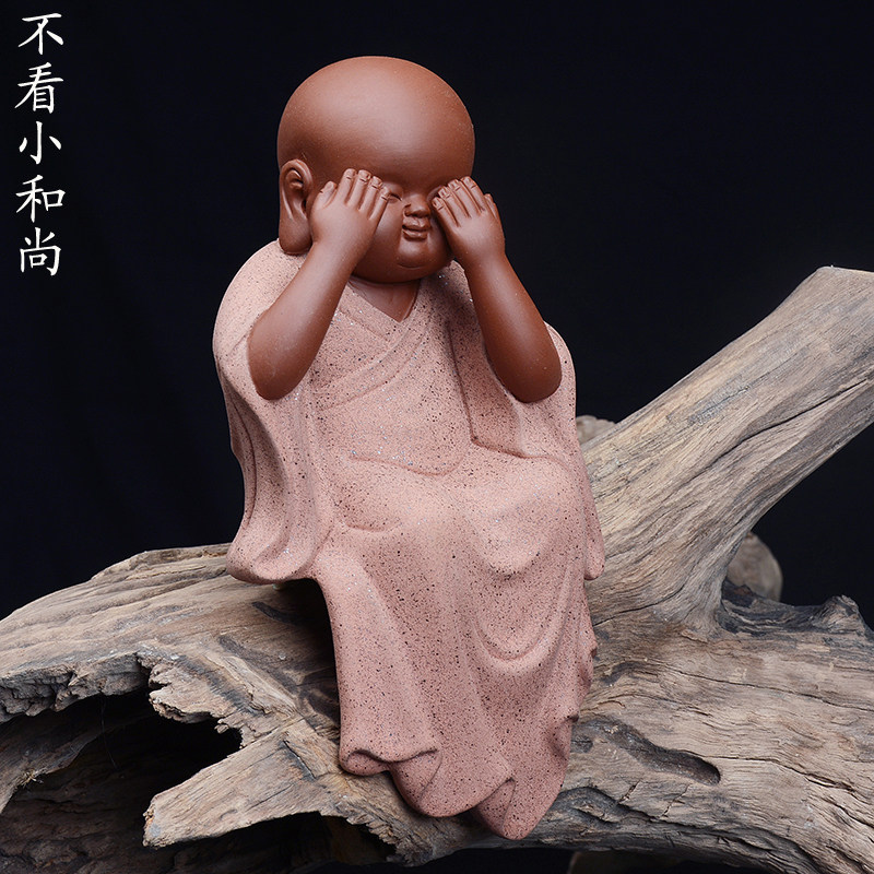📚 创意紫砂三不小和尚茶宠陶瓷不看不说不听可爱佛创意手工家居摆件