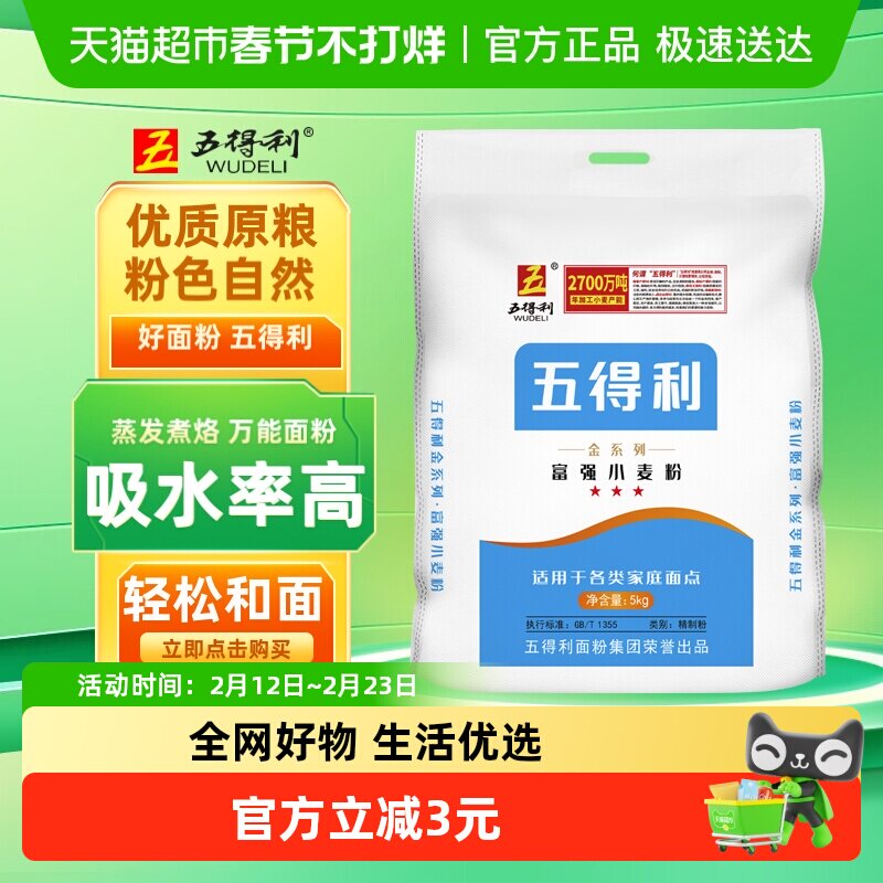 📚 五得利面粉中筋通用 金富强小麦粉家用面包粉包子饺子馒头白面