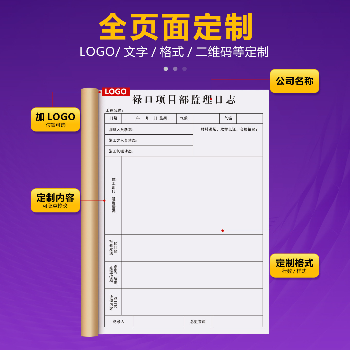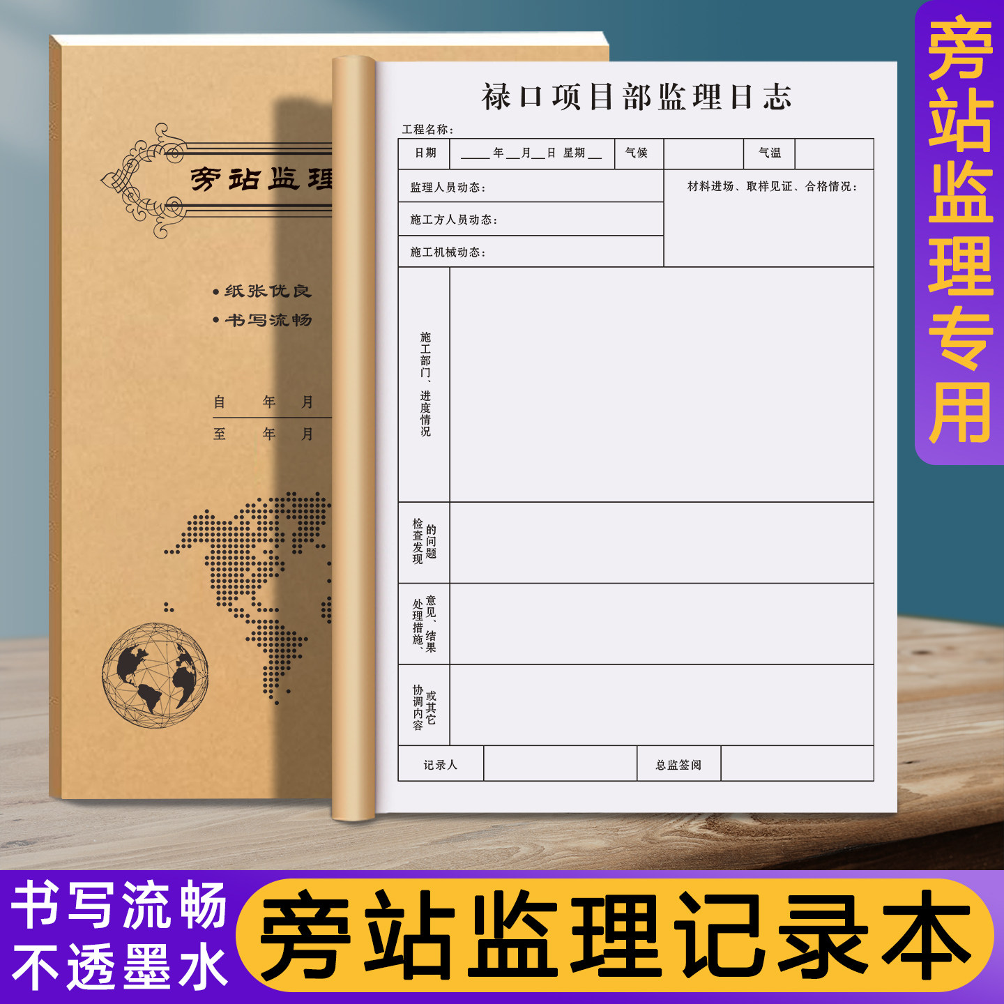 📚 【旁站监理记录本】定制建筑工地安全施工日记本监理员每日巡查监督工作日志工程质量验收登记本项目进度手册