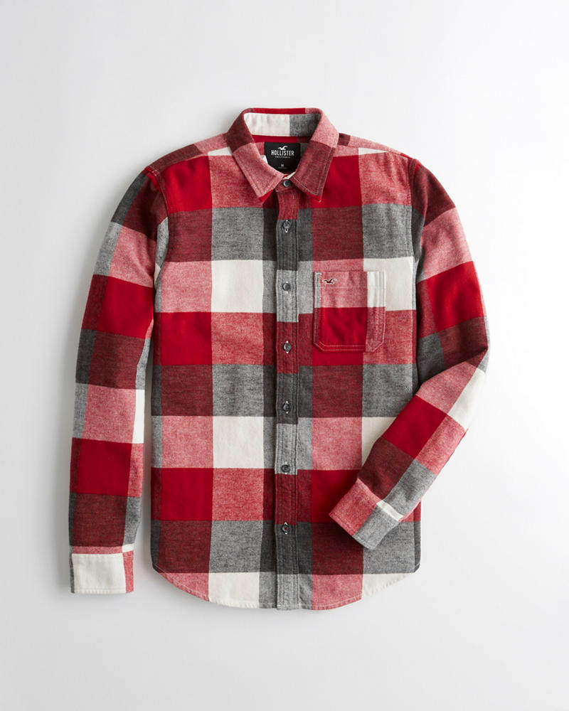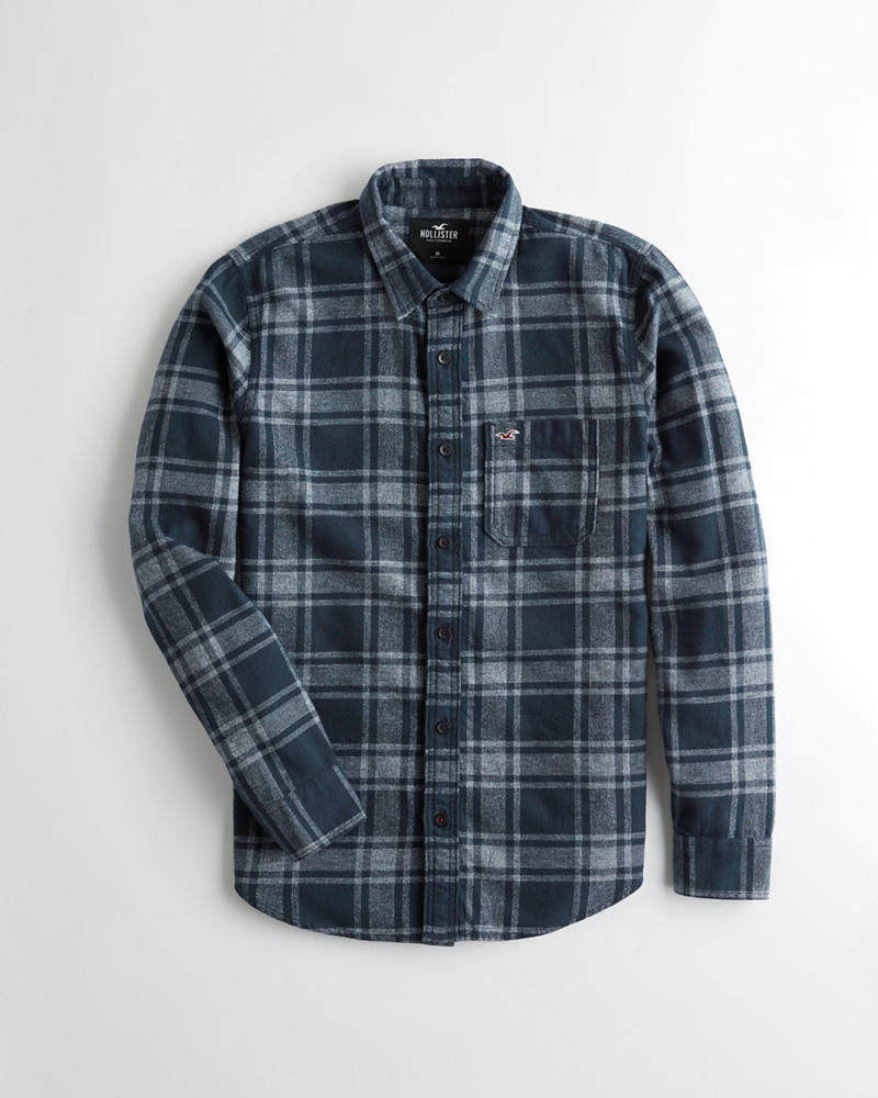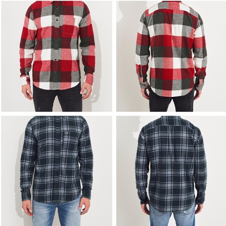 📚 法兰绒衬衫美国海鸥HCO Hollister男厚款秋冬修身格子长袖