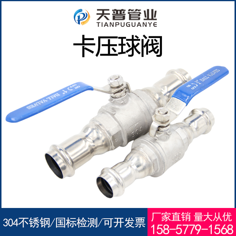 📚 304不锈钢双卡压球阀两片式管道开关薄壁一体卡压管件水管阀门4分