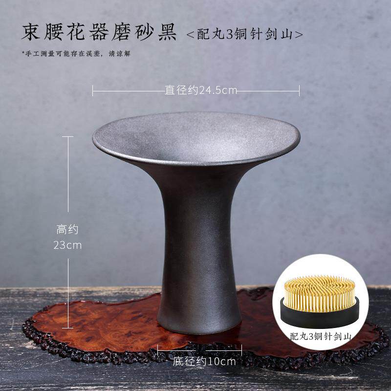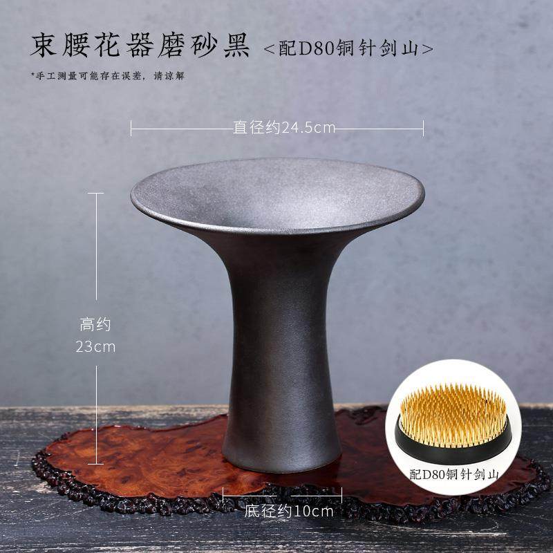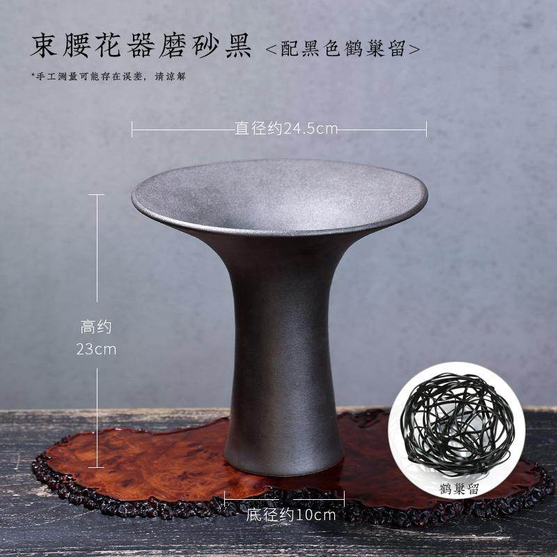 📚 高档陶瓷器花瓶束腰复禅剑意古中式日式山插花皿客厅摆件池坊花道
