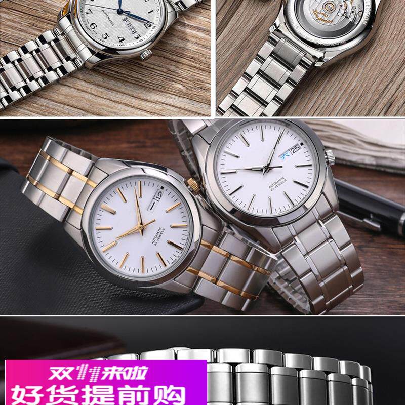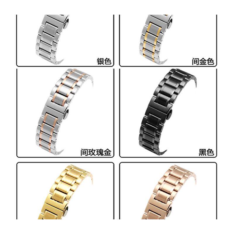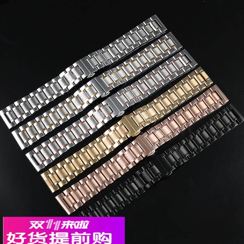 📚 男女实心不锈钢手表带代用欧米茄浪琴名匠天梭天王通用蝴蝶扣钢带