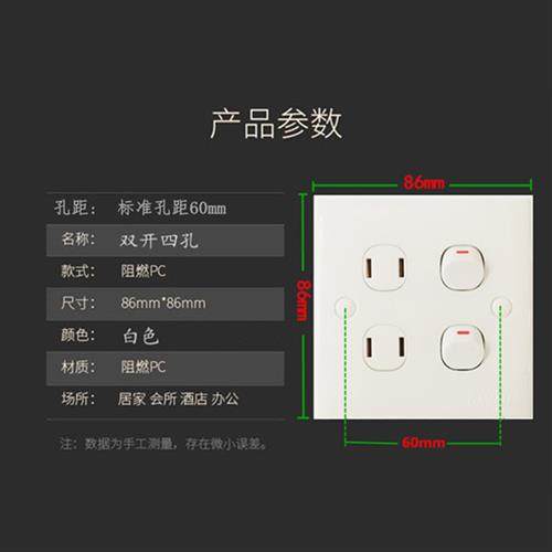 📚 二开四孔插座86型墙壁开关电源二二家用10a暗装扦面板单独双控制
