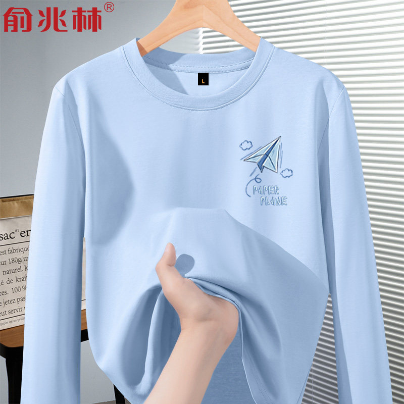 📚 蓝色长袖t恤男纯棉打底衫显白2026新款青少年春秋款上衣内搭衣服