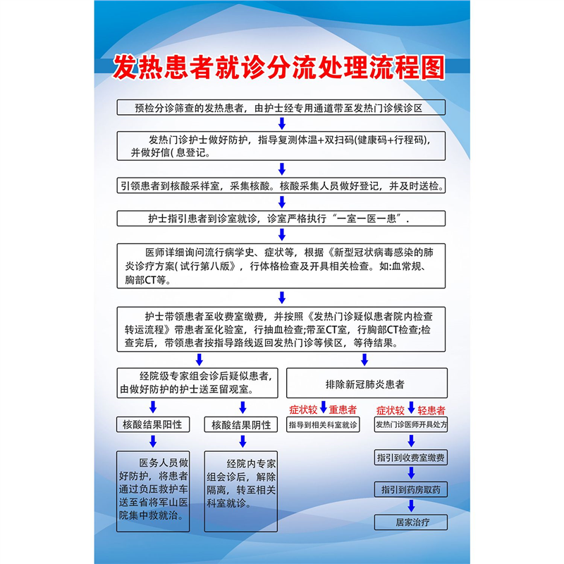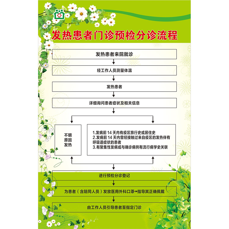 📚 医院发热患者就诊分流处理流程图墙贴墙纸挂图预检分诊流程图海报