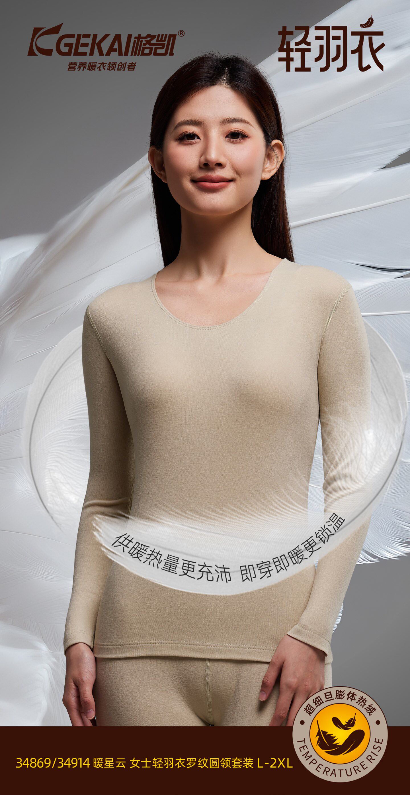 📚 格凯女士轻暖发热薄保暖轻羽衣贴身木代尔打底套装秋衣秋套装