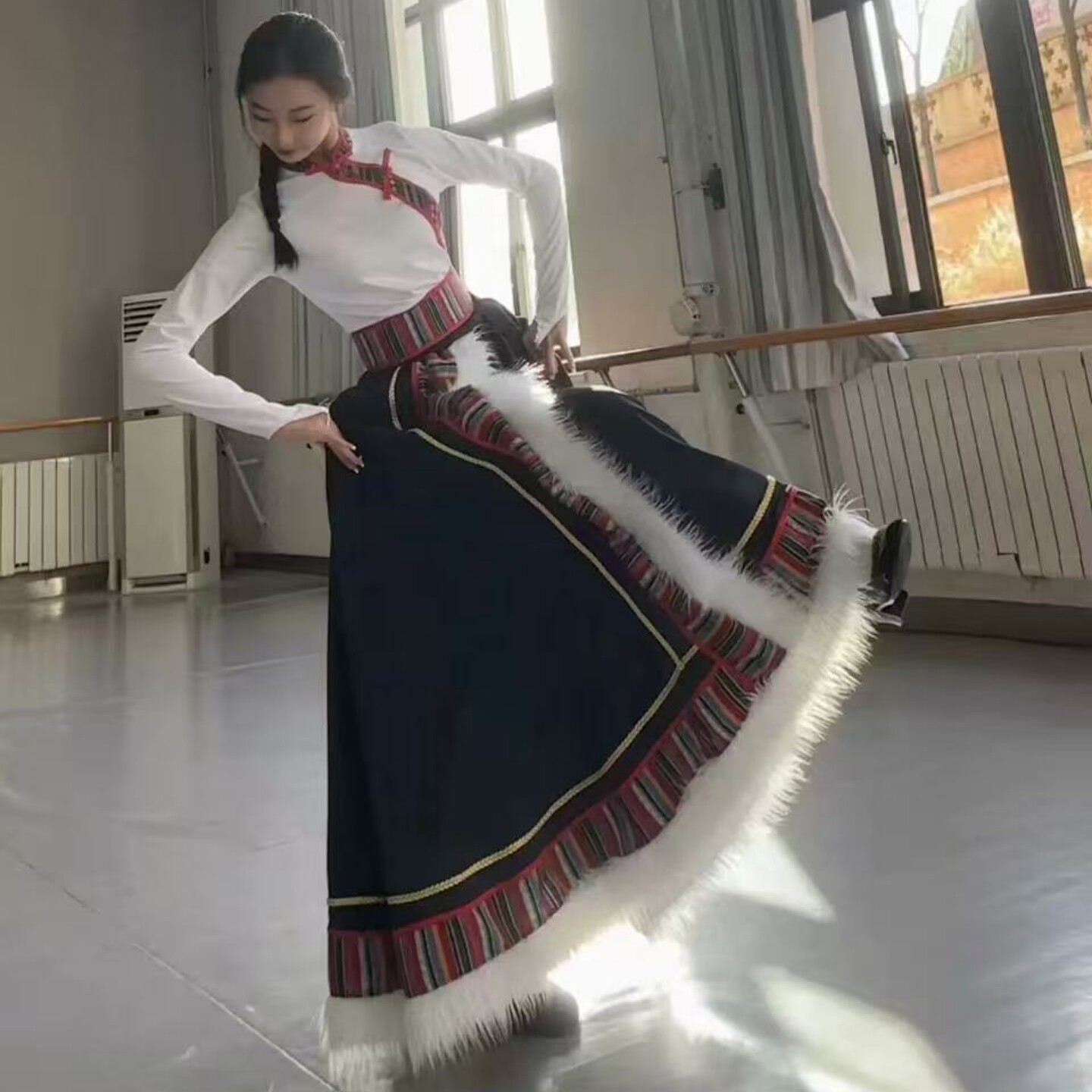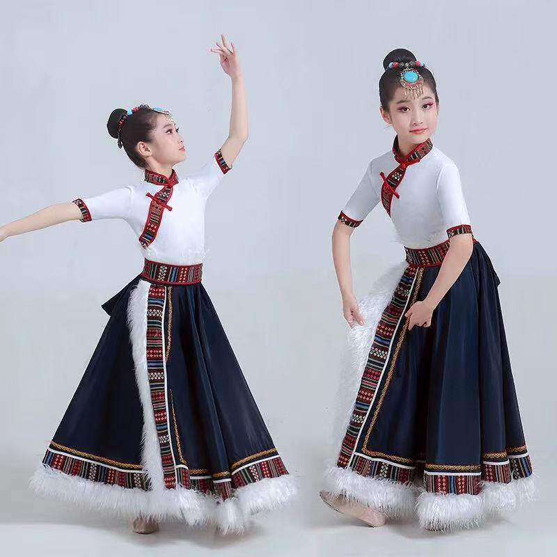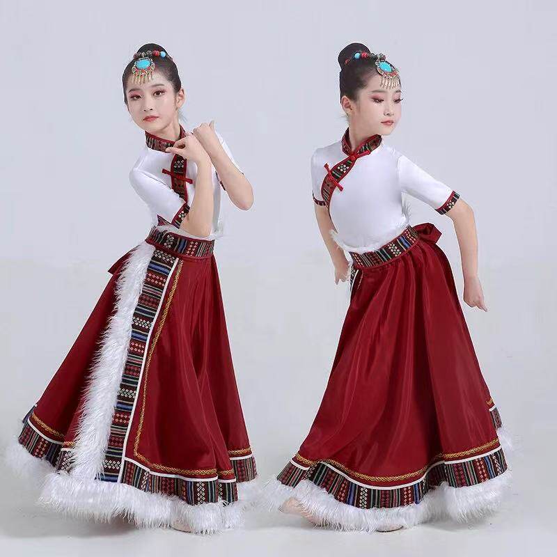 📚 新款儿童藏服次仁拉索表演藏族舞蹈演出服装帽子少数民族头饰女裙