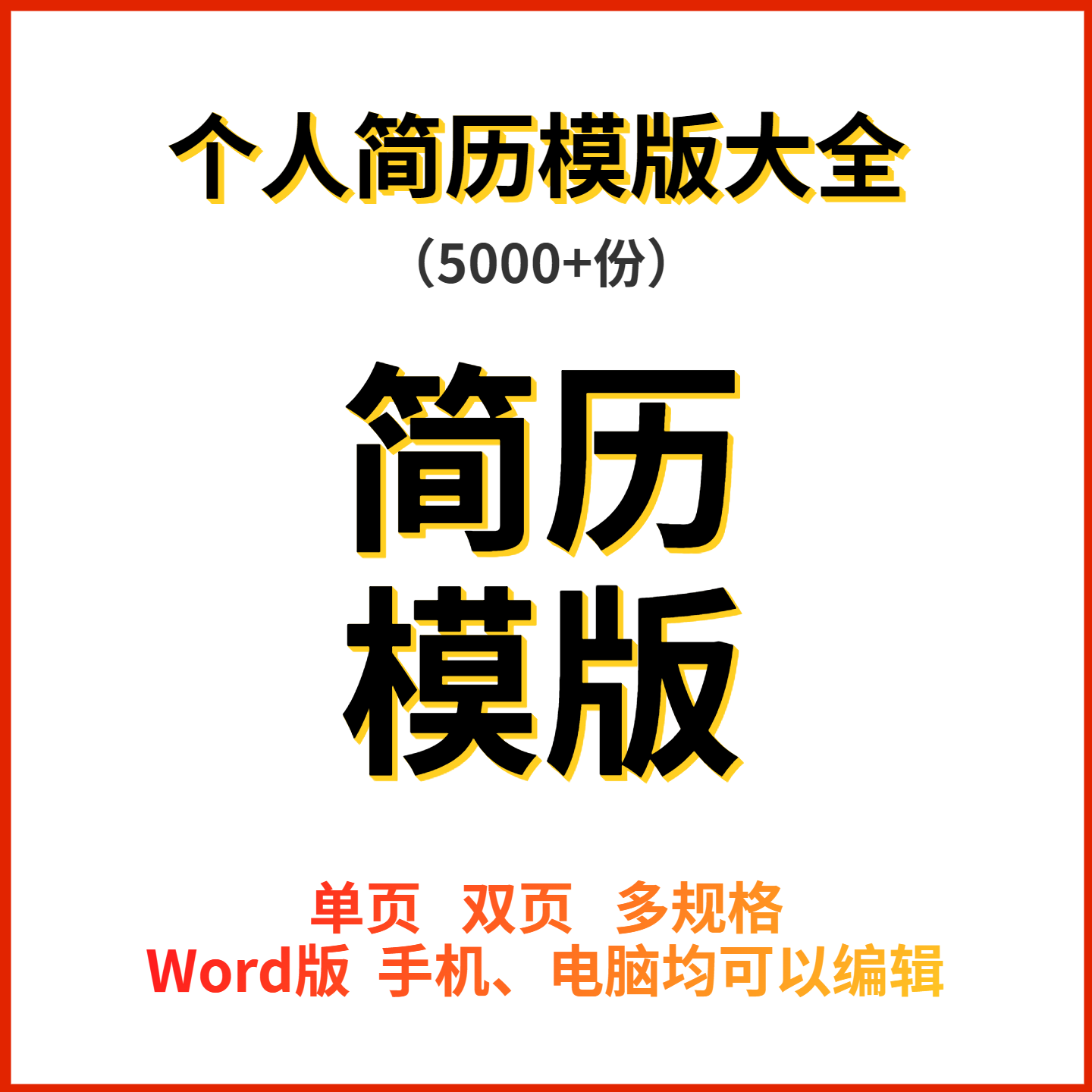 📚 简约个人简历模版毕业生求职各类面试简历电子版WORD编辑5000套