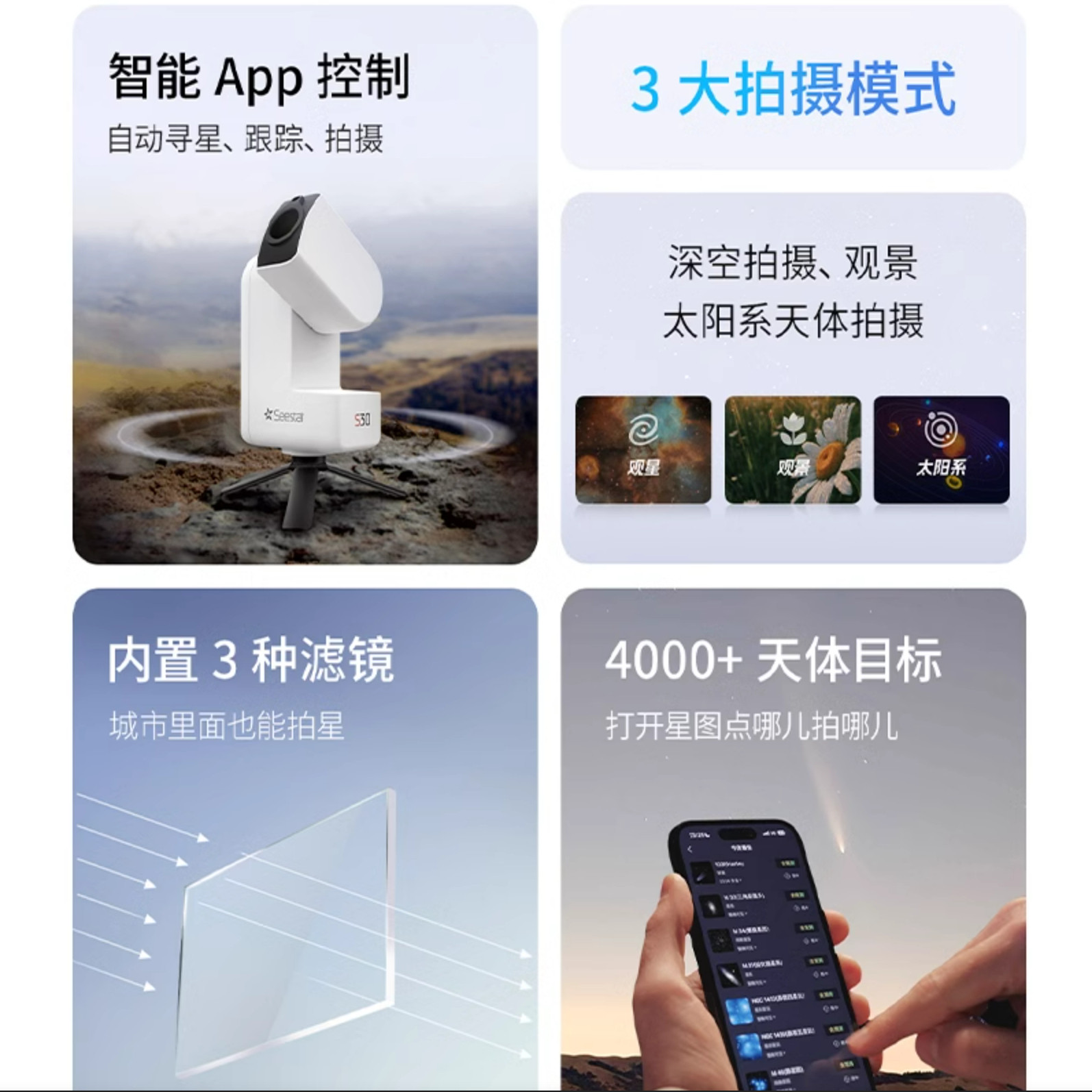 📚 ZWO Seestar S30智能天文望远镜高清高倍自动寻星行星深空拍摄