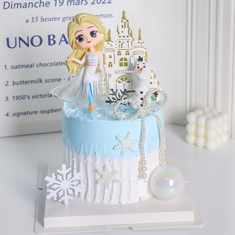 📚 女孩生日蛋糕装饰珍珠蝴蝶结插件网红冰雪爱莎女王艾莎公主摆件