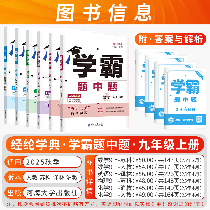 📚 26春25秋新版学霸题中题七年级八年级九年级上册下册数学英语物理化学江苏教苏科人教沪教版亮点学霸提高课时作小题狂做计算达人