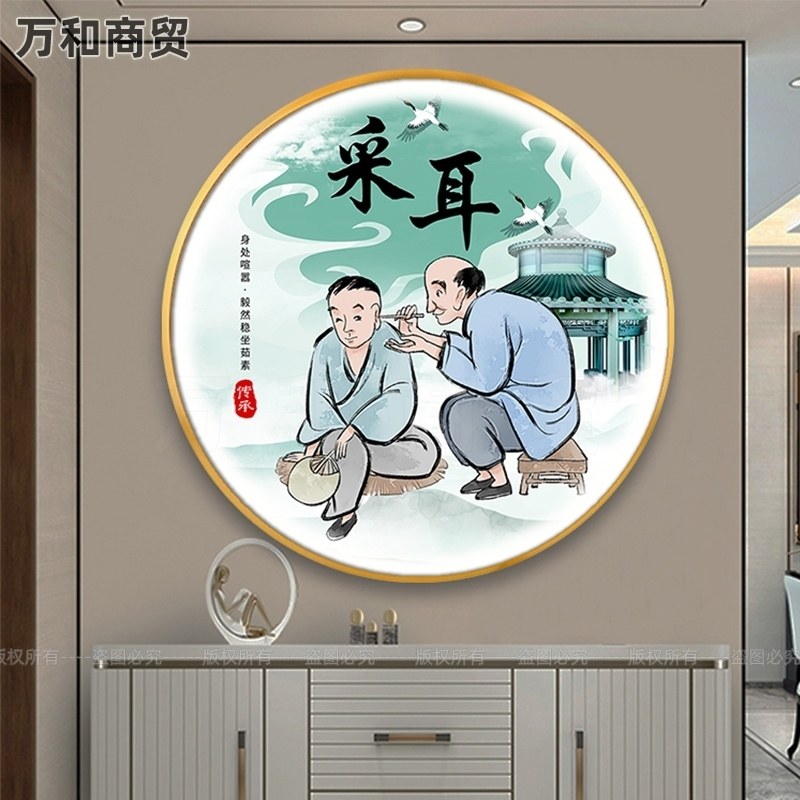 📚 网红壁画广告带灯定做LED疗养挂画圆形头装饰画生馆采耳店墙壁美