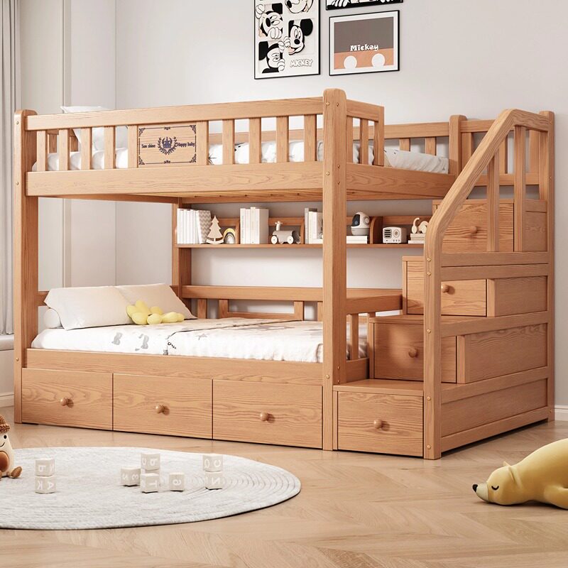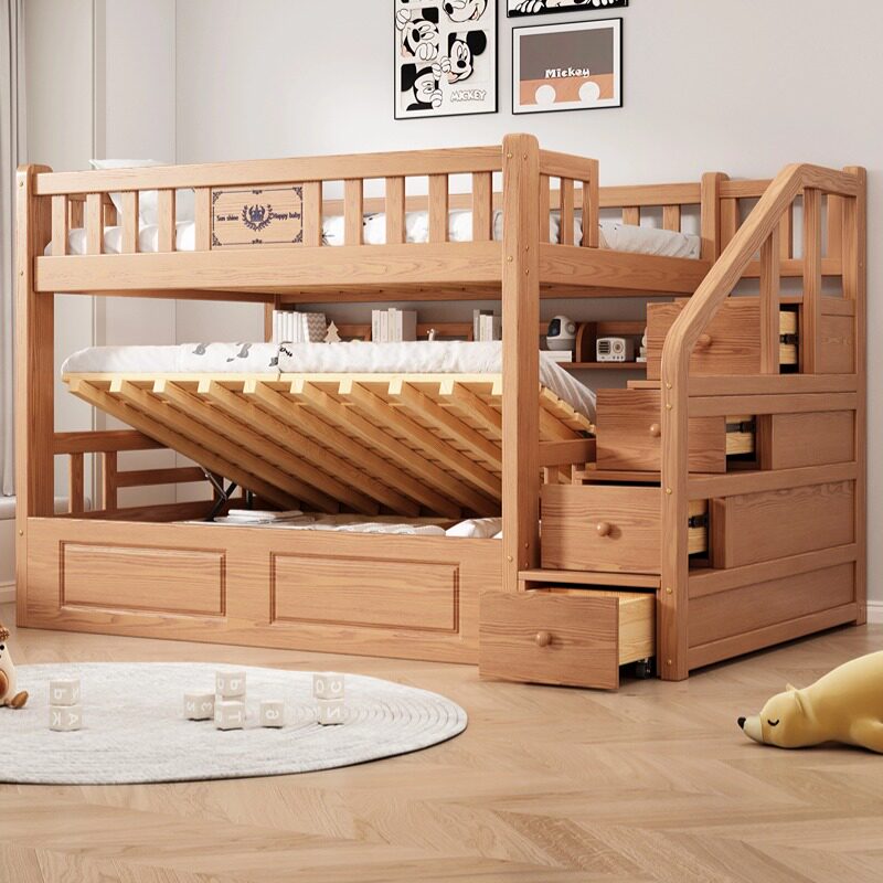 📚 FAS级红橡木全实木上下床双层床高箱储物床上下铺两层儿童高低床
