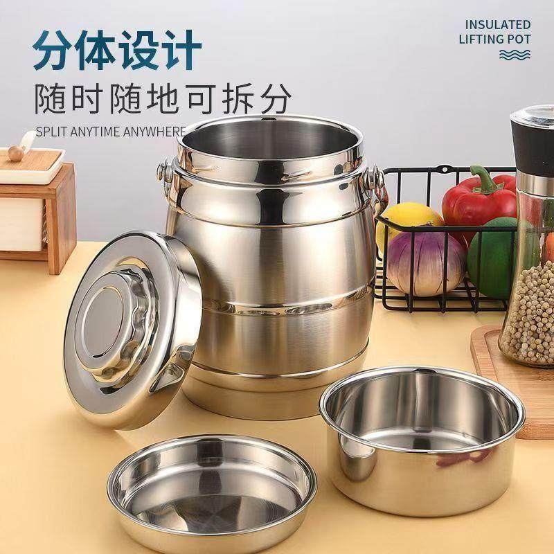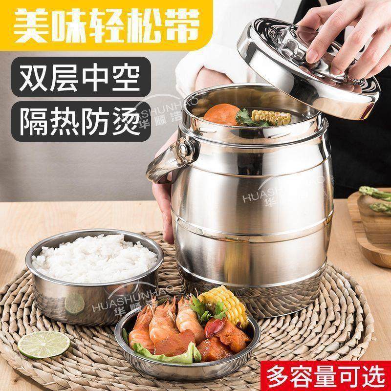 📚 不锈钢保温提锅鼓型真空饭桶饭篮大容量2/3层饭盒学生上班便当盒