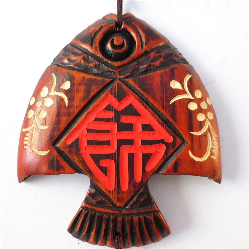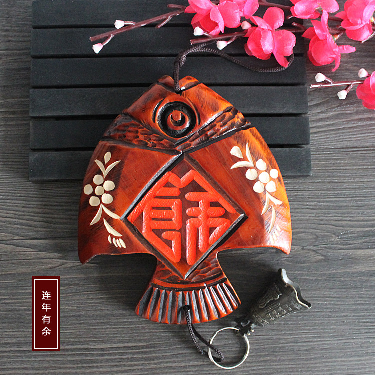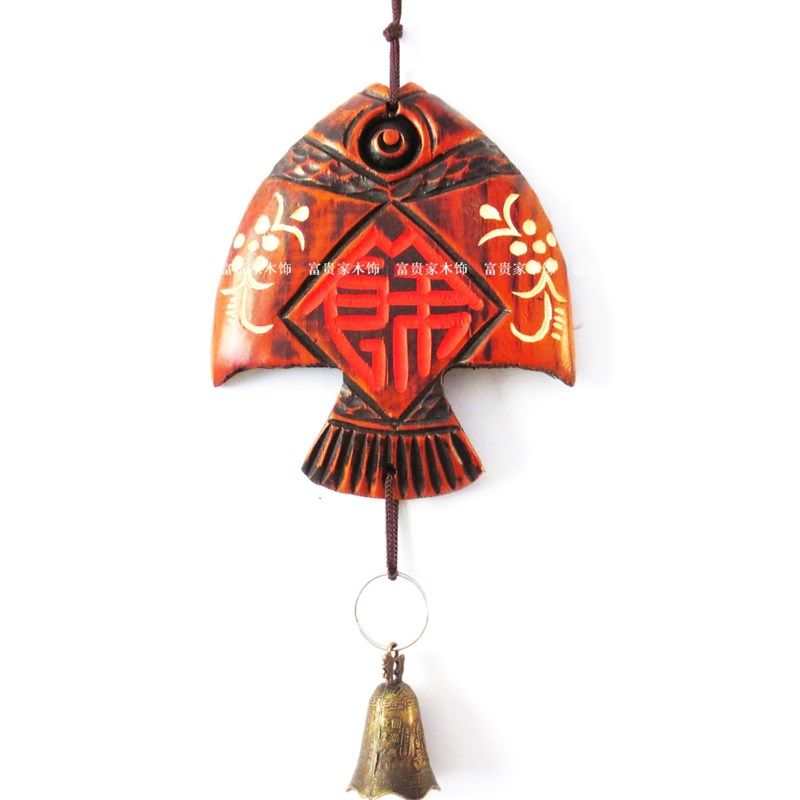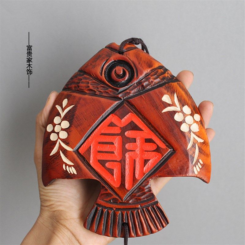 📚 木雕家居创意门上装饰品挂件客厅墙壁挂件铃铛鱼壁挂风铃挂饰门饰