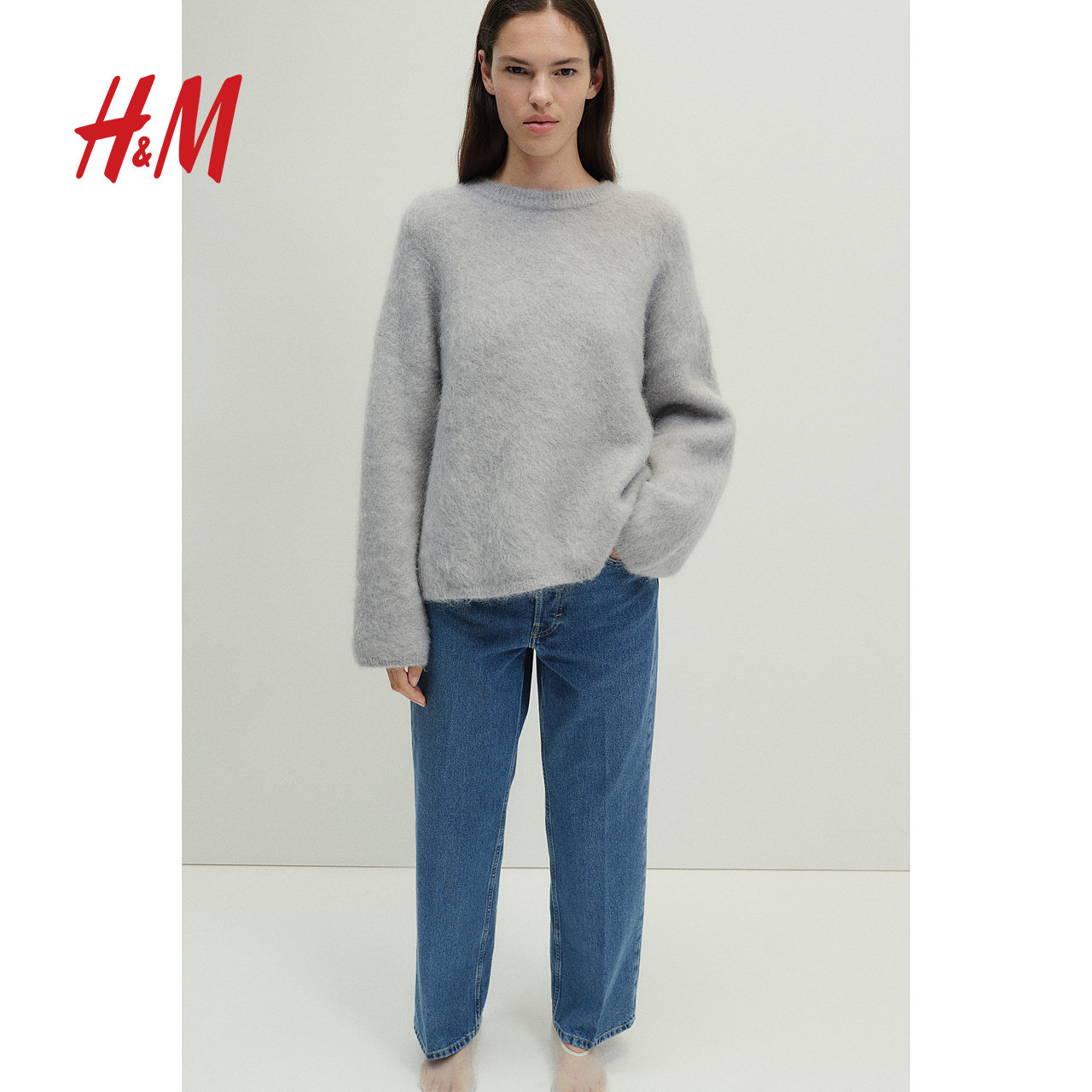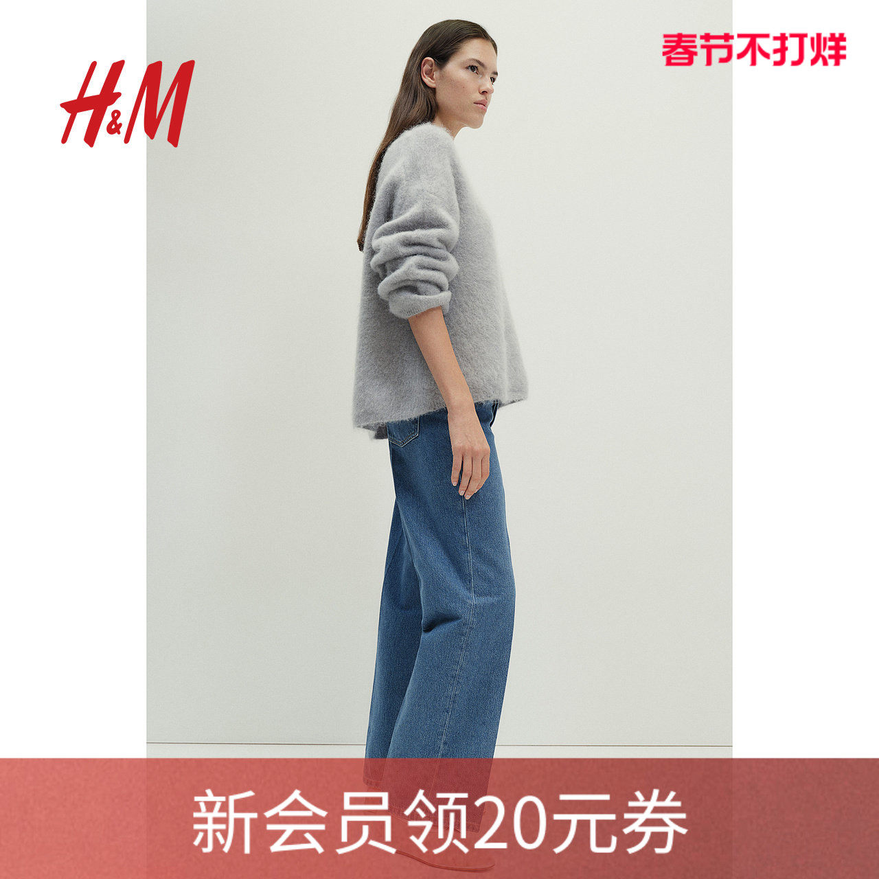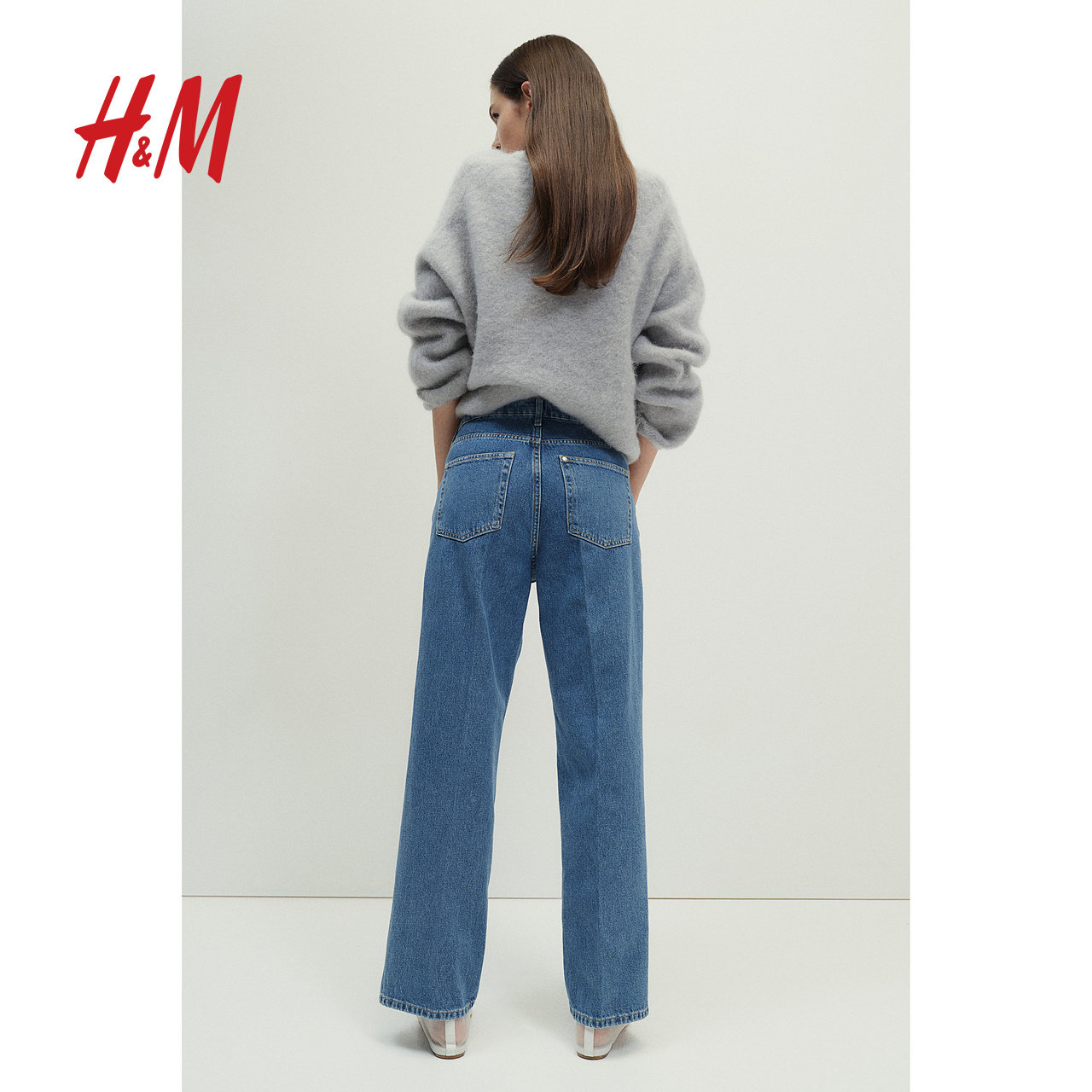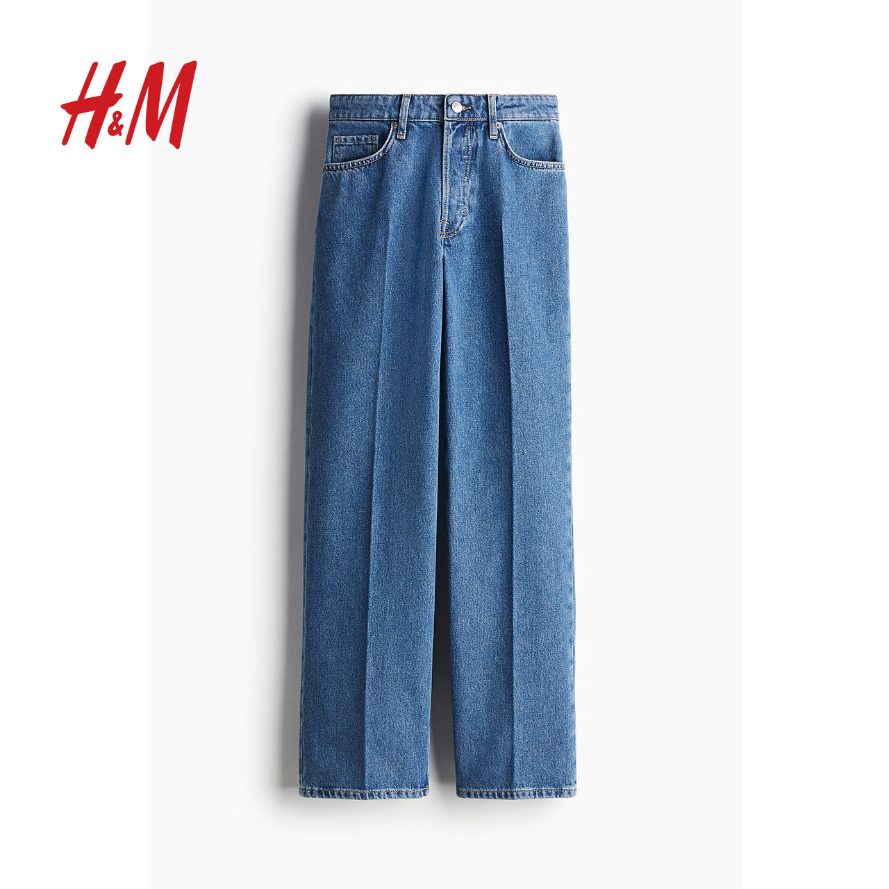 📚 HM女装牛仔裤慵懒牛仔裤5袋式中腰时尚直筒慵懒阔腿简约裤1222679