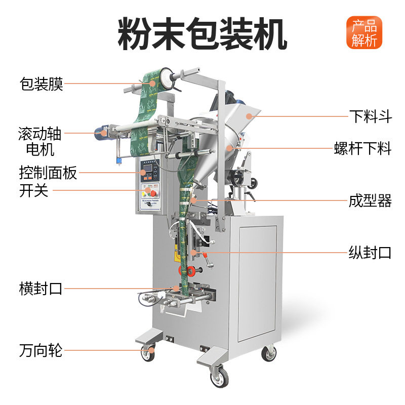 📚 大祥DXB-100F全自动粉末包装机三边封背封螺杆下料茶叶粉剂分装机