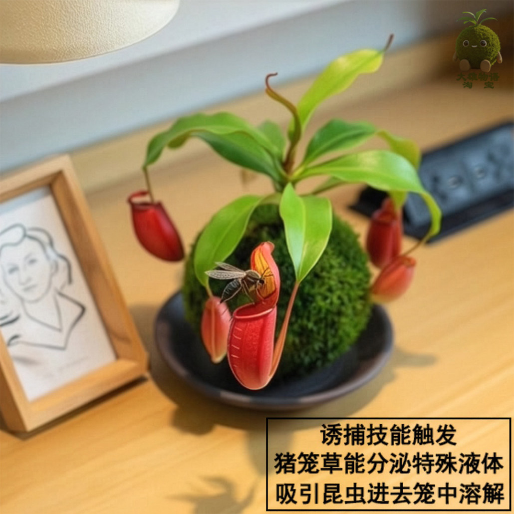 📚 猪笼草苔藓球食虫草植物盆栽室内办公桌卧室驱蚊捕虫趣味绿植花卉