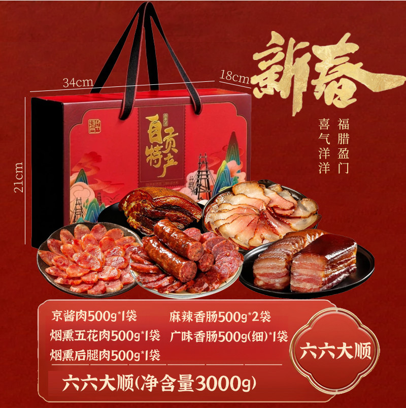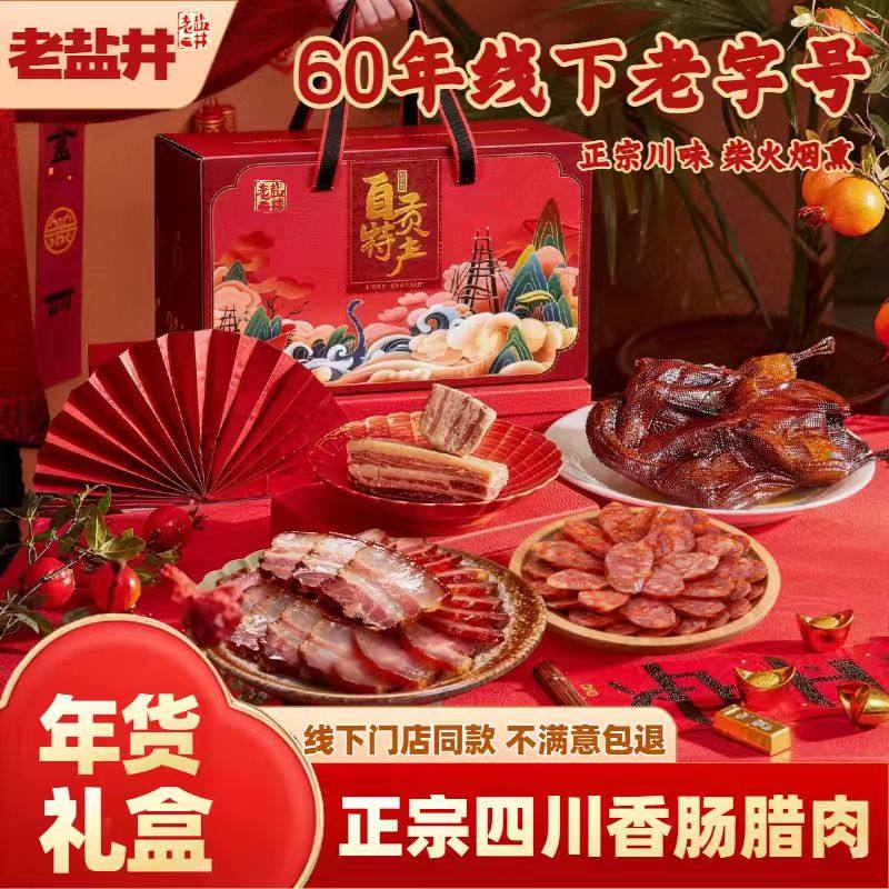 📚 老盐井正宗四川农家烟熏腊肉腊肠传统手工四川烟熏腊肉特产礼盒装