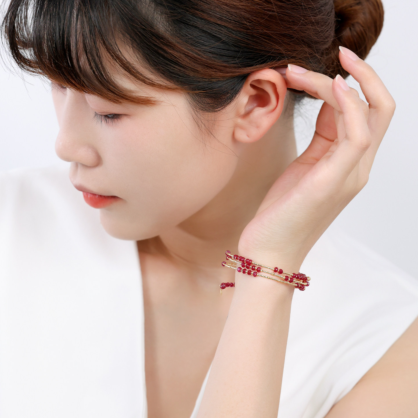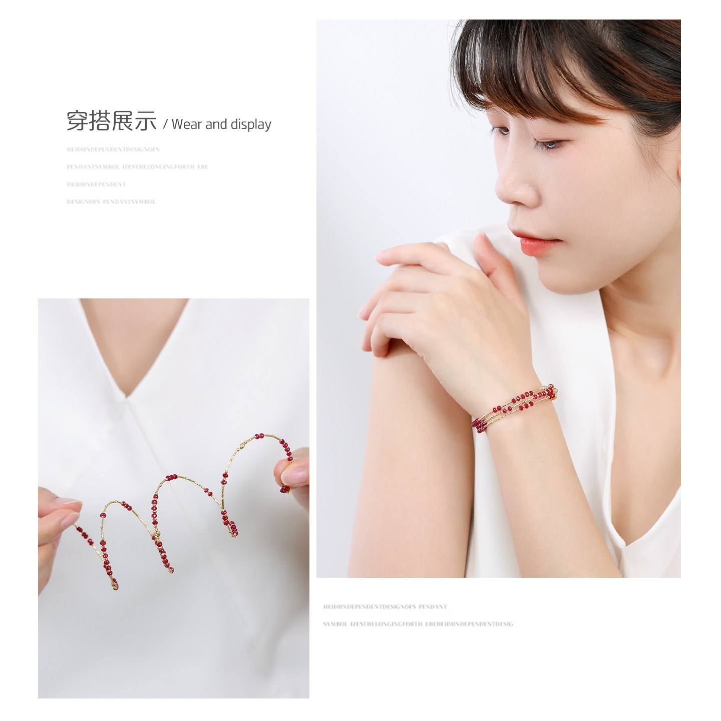 📚 若华珠宝红樱 满天星鸽血红宝石手链女18K金多层弹力手镯手串手饰