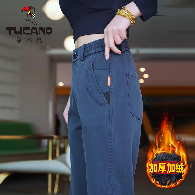 📚 啄木鸟2025休闲裤加绒加厚男士秋冬季新款宽松直筒百搭中年长裤子