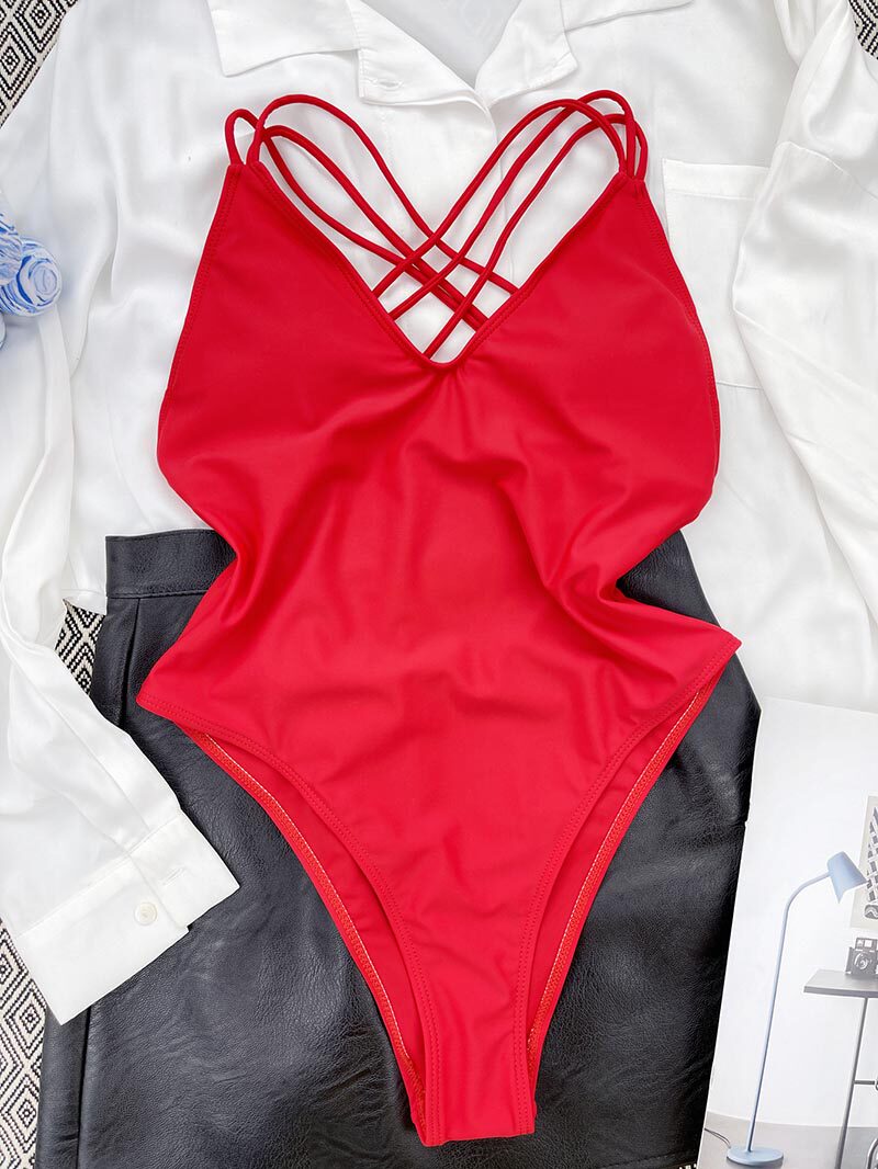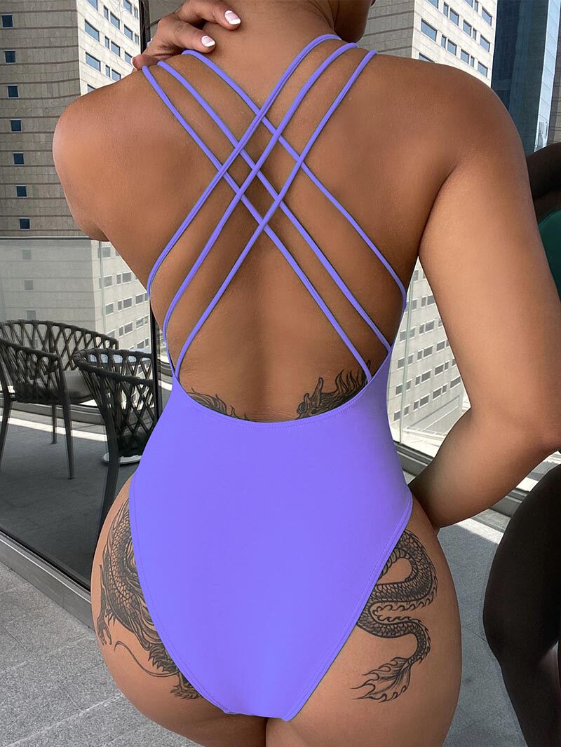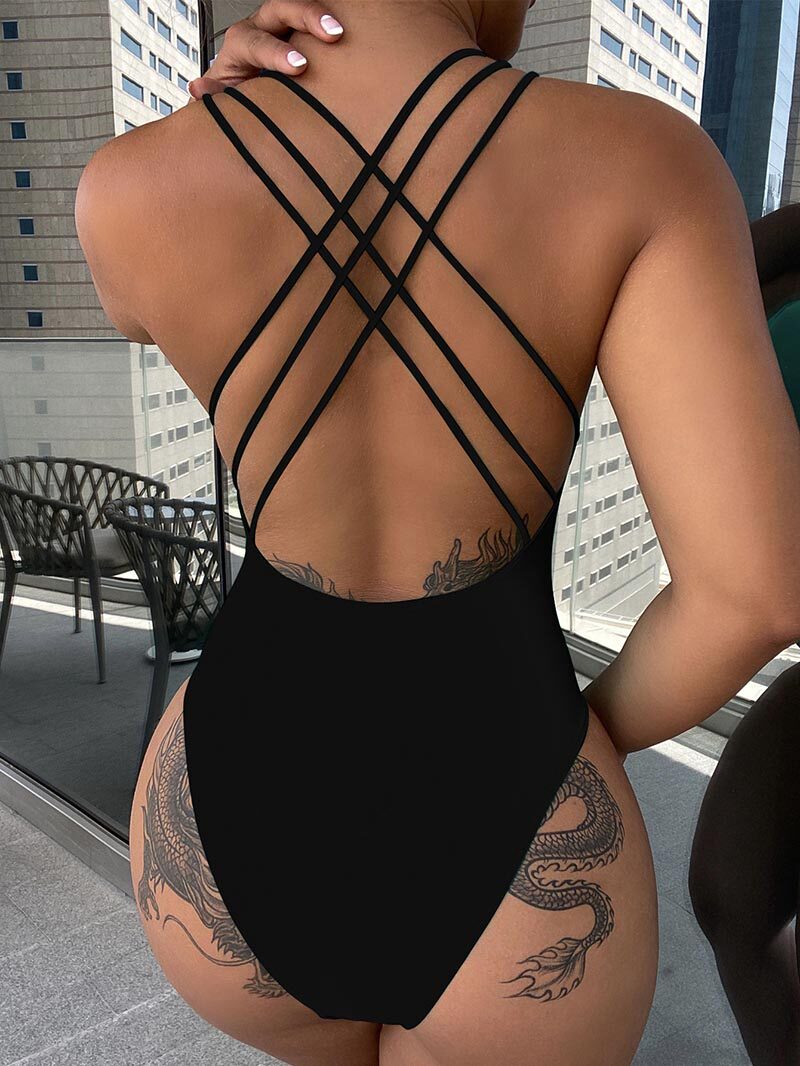 📚 Sexy cross shoulder strap open back swimsuit交叉肩带露背泳装